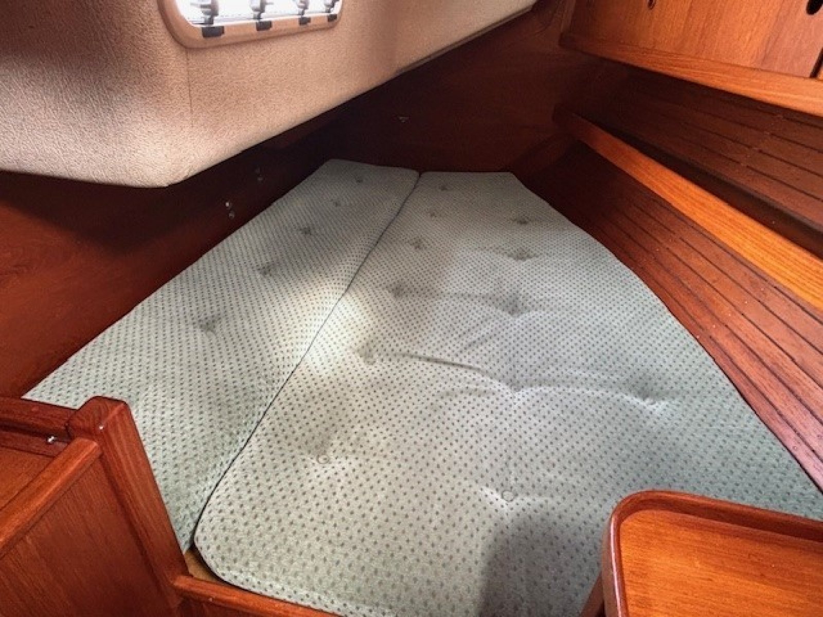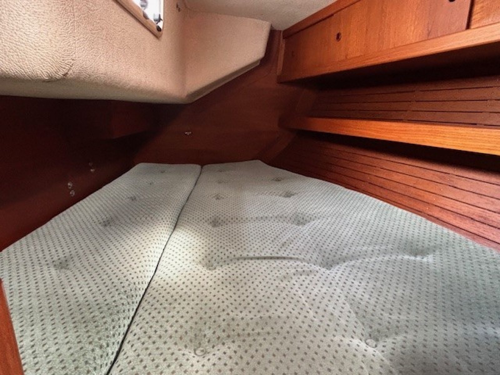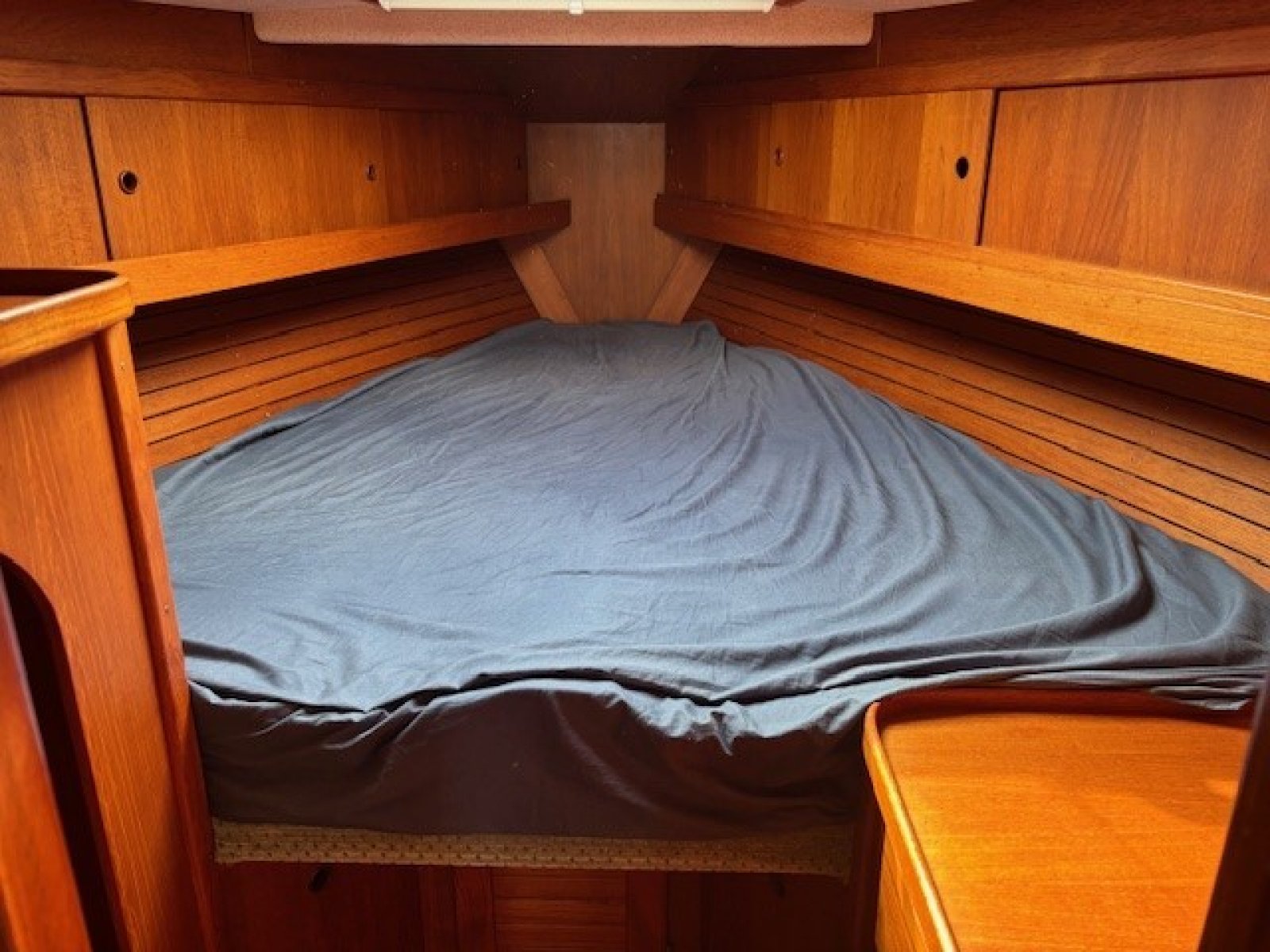 Die Abmessungen des vorderen Kabinenbettes sind: 190 x 185 cm
