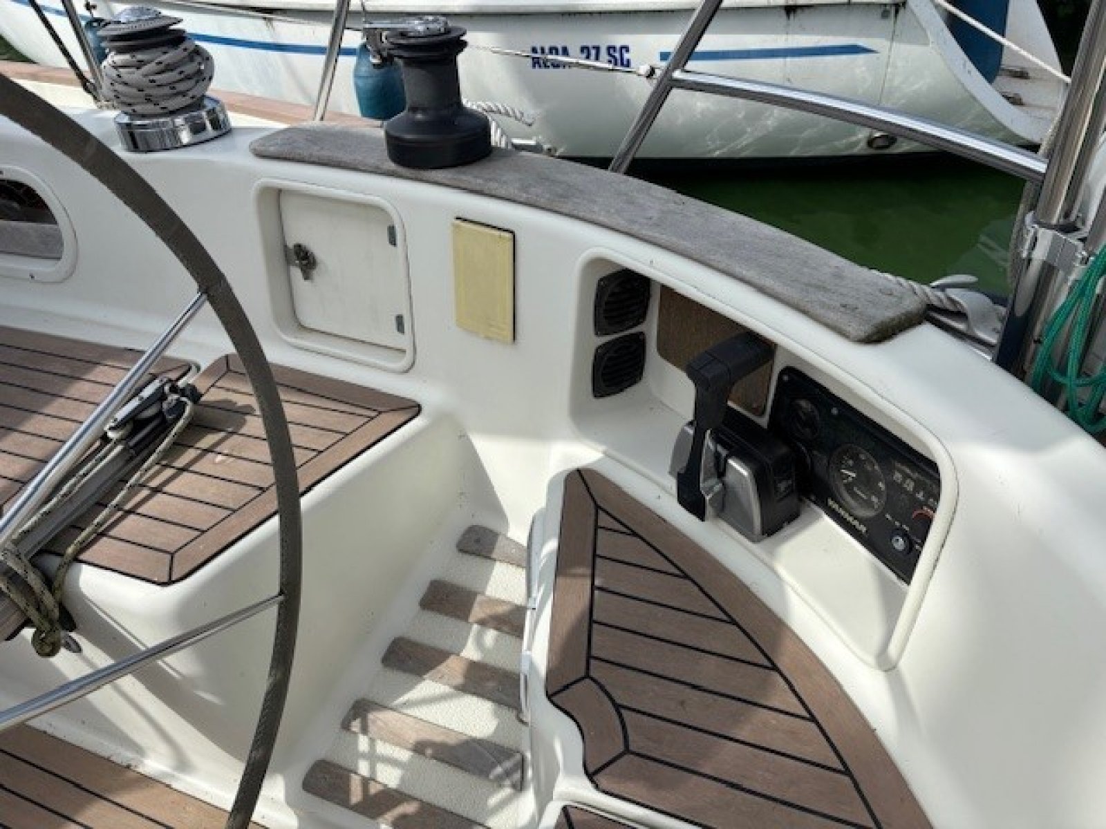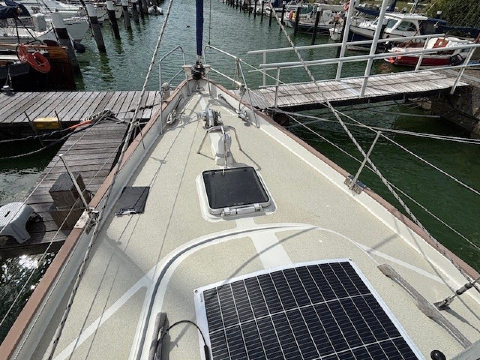 An Bord sorgt das mit Flexteak verkleidete geräumige Cockpit für Komfort und Stil, während das gemütliche Interieur zu langen Abenden nach einem Segeltag einlädt. Technisch ist diese Degerö 35 für eine lange Reise gerüstet: der Autopilot wurde überholt/erneuert (2022/23), ein neuer Garmin Plotter (2021), ein Maxprop Propeller (2021) und ein junges Bugstrahlruder (2015) sorgen für optimale Manövrierfähigkeit. Mit dem neuen AIS (2021), zwei neuen UKW-Funkgeräten (2018/21) und aktualisiertem Rigg (2021) segeln Sie sicher und souverän. Auch der praktische Komfort wurde nicht vergessen: eine elektrische Ankerwinde (2020), neue Batterien und viele andere Verbesserungen wie ein Epirb, Ventile (2011), neue Ruderlager (2015) vervollständigen dieses Schiff.