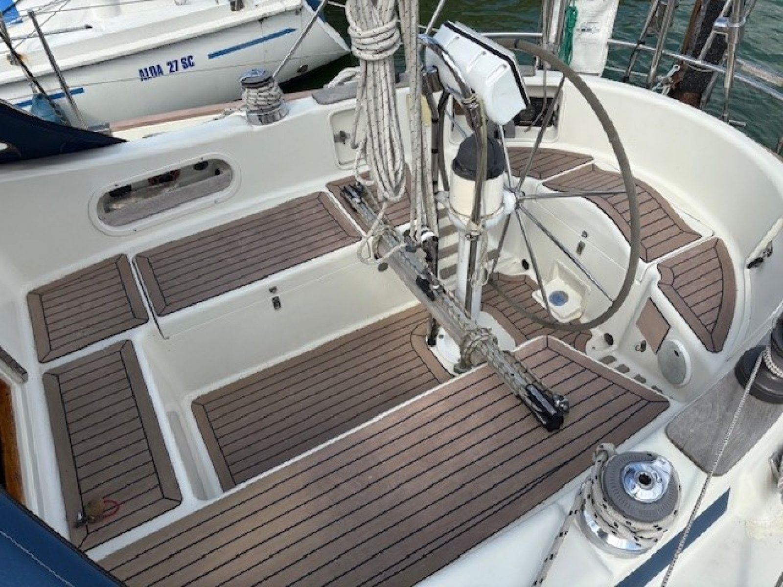 Das Flexteak im Cockpit und entlang der Deckskante wurde im November 2021 erneuert.