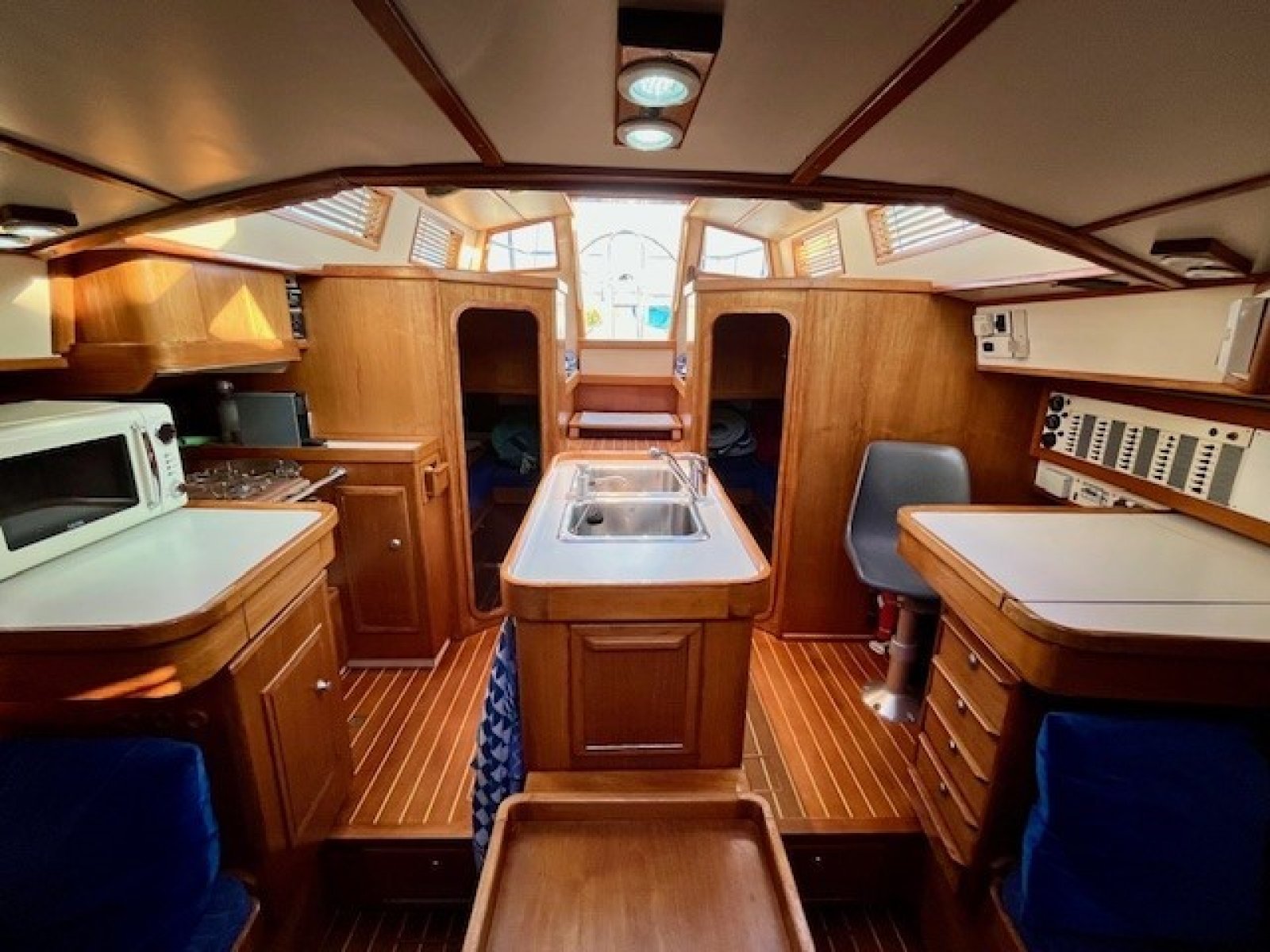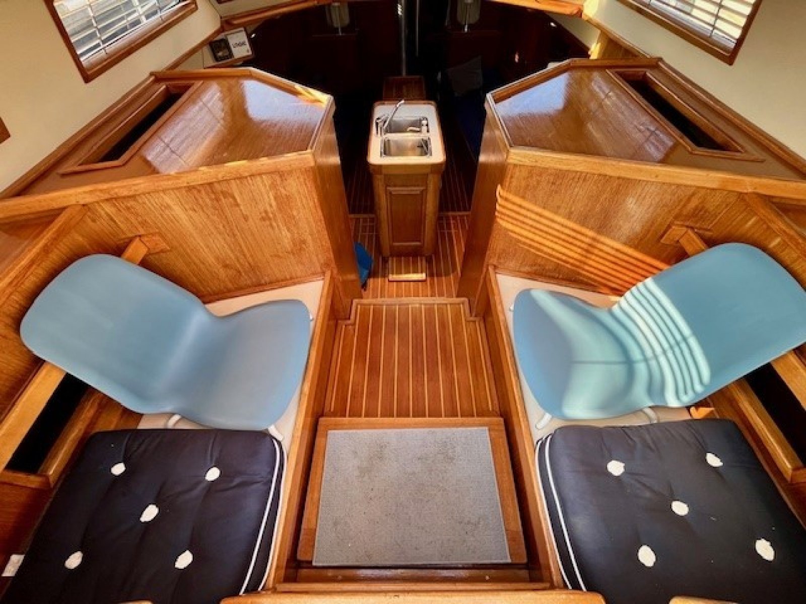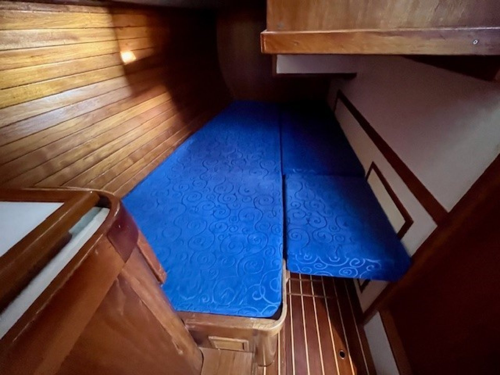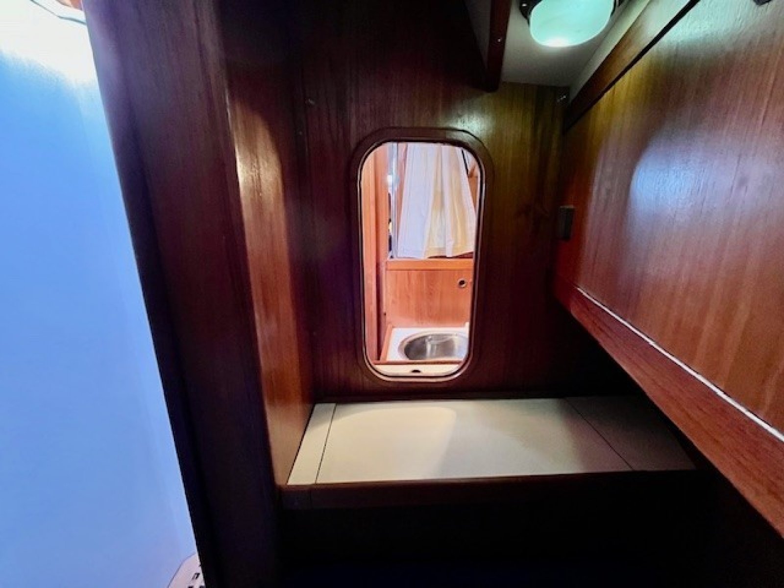 Dieses Northern Comfort kann zu Recht als Schiff bezeichnet werden: Robust, funktionell und komfortabel für Langfahrten. Ein solide gebauter Rumpf (isoliert) mit Kielschwert ermöglicht einen guten Tiefgang für Seereisen und die Erkundung flachere Gewässern. Die Ruderkonstruktion eignet sich dabei für eventuell "Trockenfallen". Das 'Doghouse' bietet einen geschützten Platz bei rauen Bedingungen unter Segel, oder kann als komfortable Unterkunft mit Rundumsicht benutzt werden. Die Aufteilung ist gut durchdacht und praktisch und bietet u.a. drei separate Kabinen und einen separaten Duschraum. Der sehr große Salontisch bietet reichlich Platz für alle Crewmitglieder und Gäste.