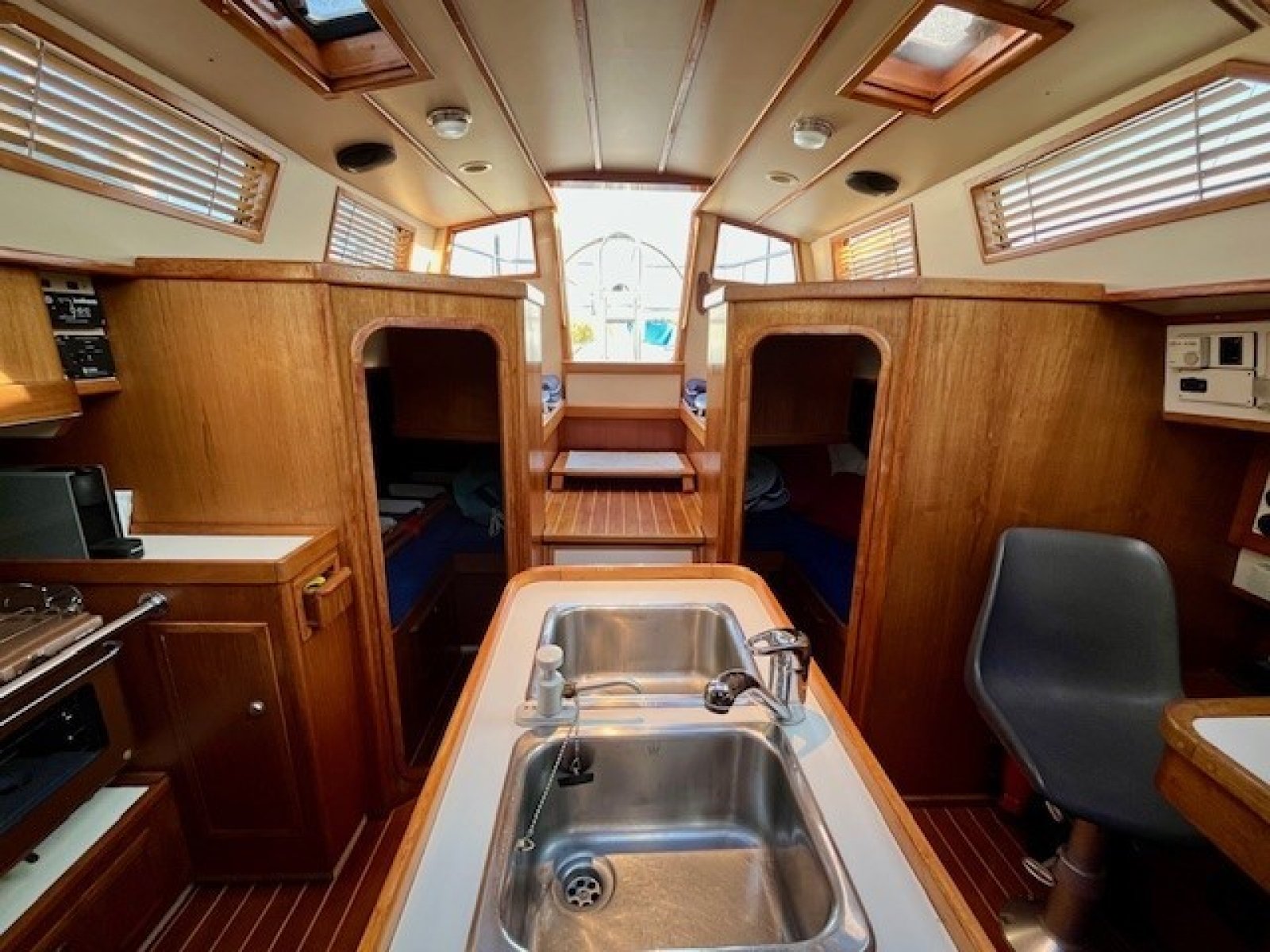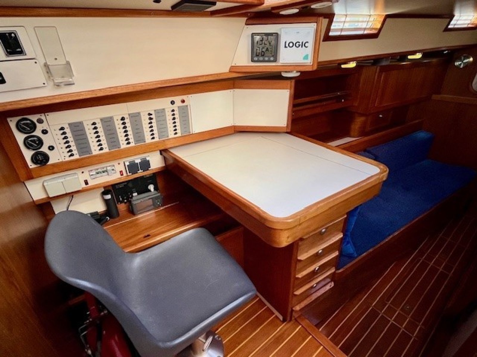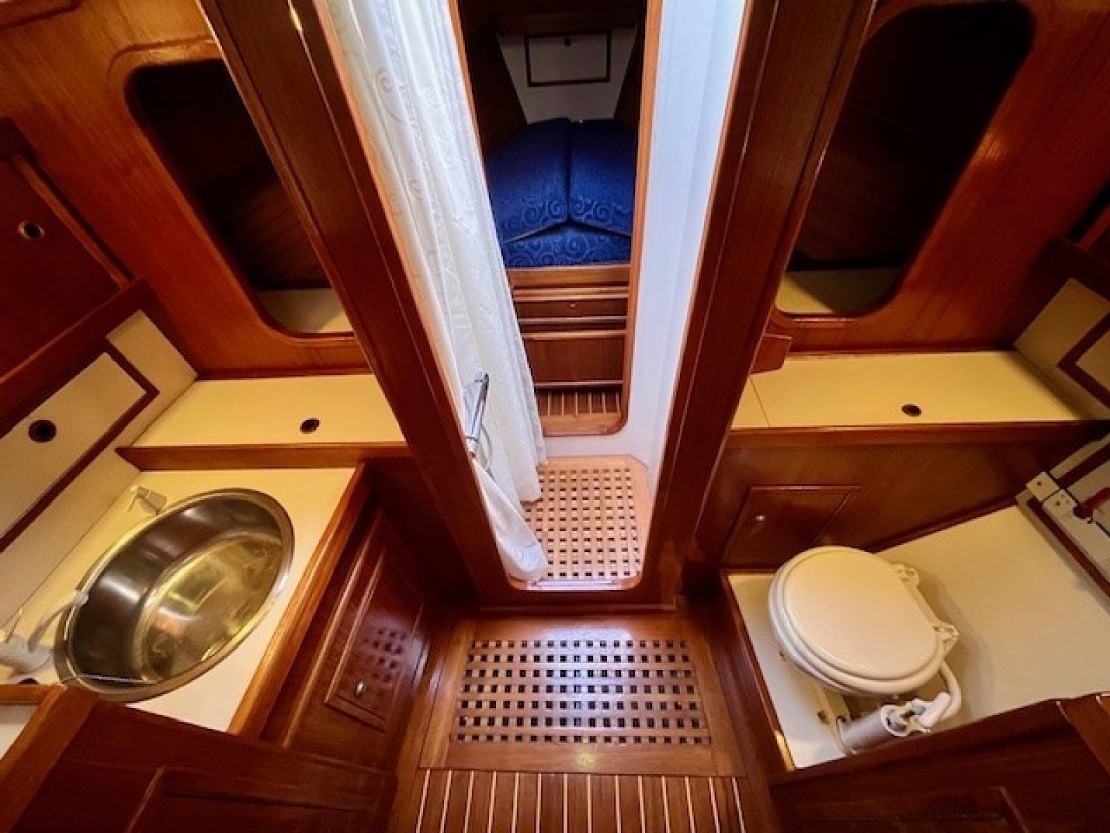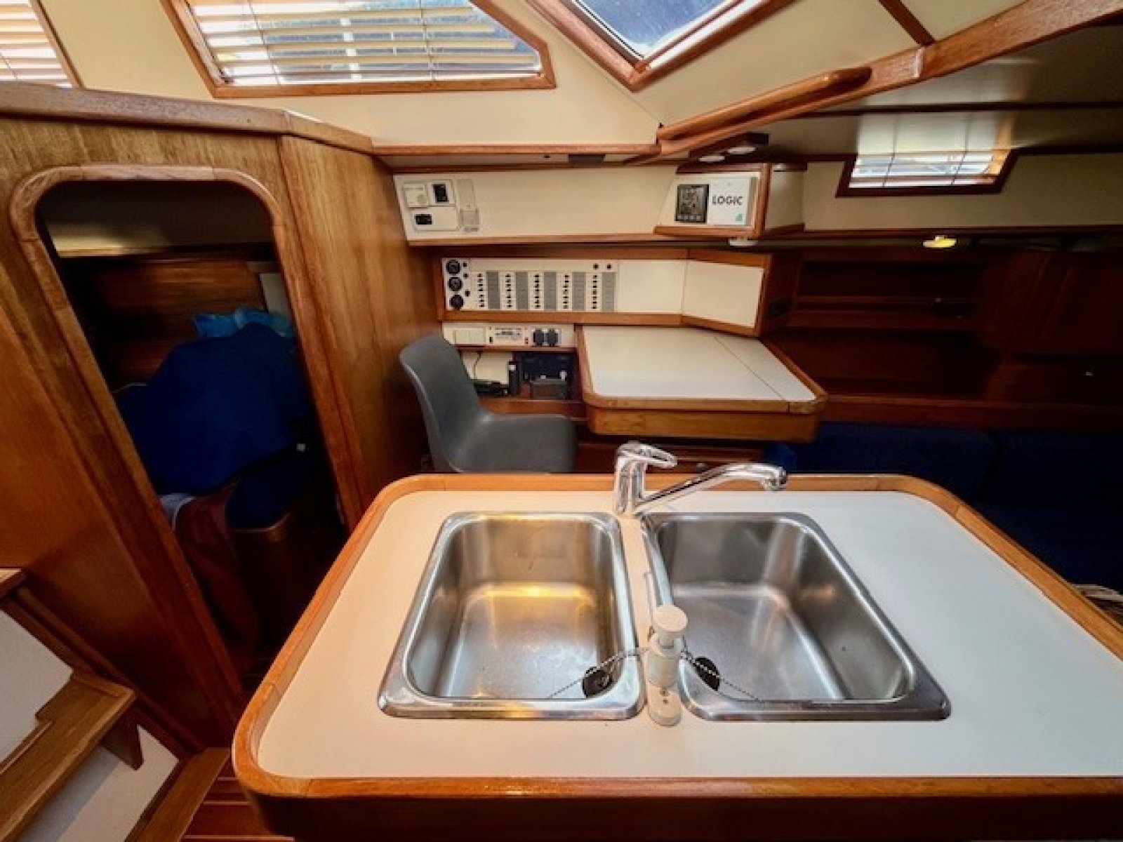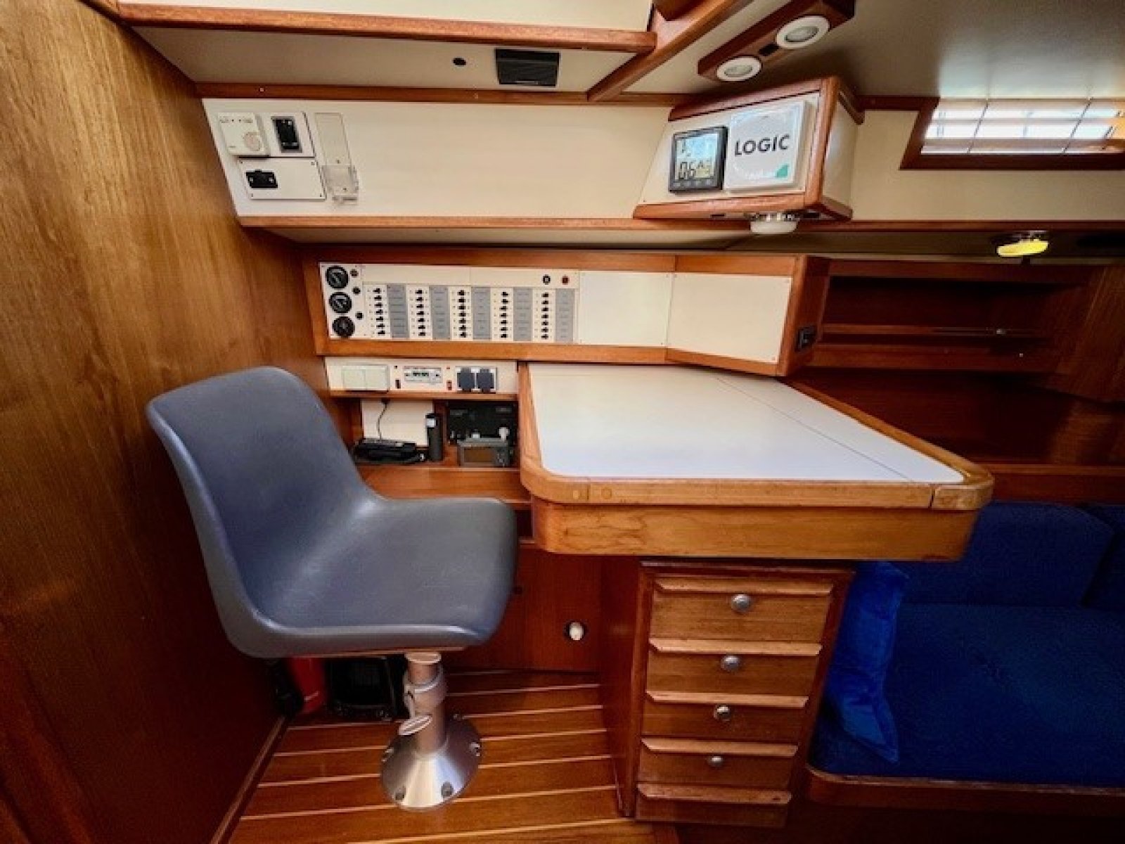 Dieses Northern Comfort kann zu Recht als Schiff bezeichnet werden: Robust, funktionell und komfortabel für Langfahrten. Ein solide gebauter Rumpf (isoliert) mit Kielschwert ermöglicht einen guten Tiefgang für Seereisen und die Erkundung flachere Gewässern. Die Ruderkonstruktion eignet sich dabei für eventuell "Trockenfallen". Das 'Doghouse' bietet einen geschützten Platz bei rauen Bedingungen unter Segel, oder kann als komfortable Unterkunft mit Rundumsicht benutzt werden. Die Aufteilung ist gut durchdacht und praktisch und bietet u.a. drei separate Kabinen und einen separaten Duschraum. Der sehr große Salontisch bietet reichlich Platz für alle Crewmitglieder und Gäste.
