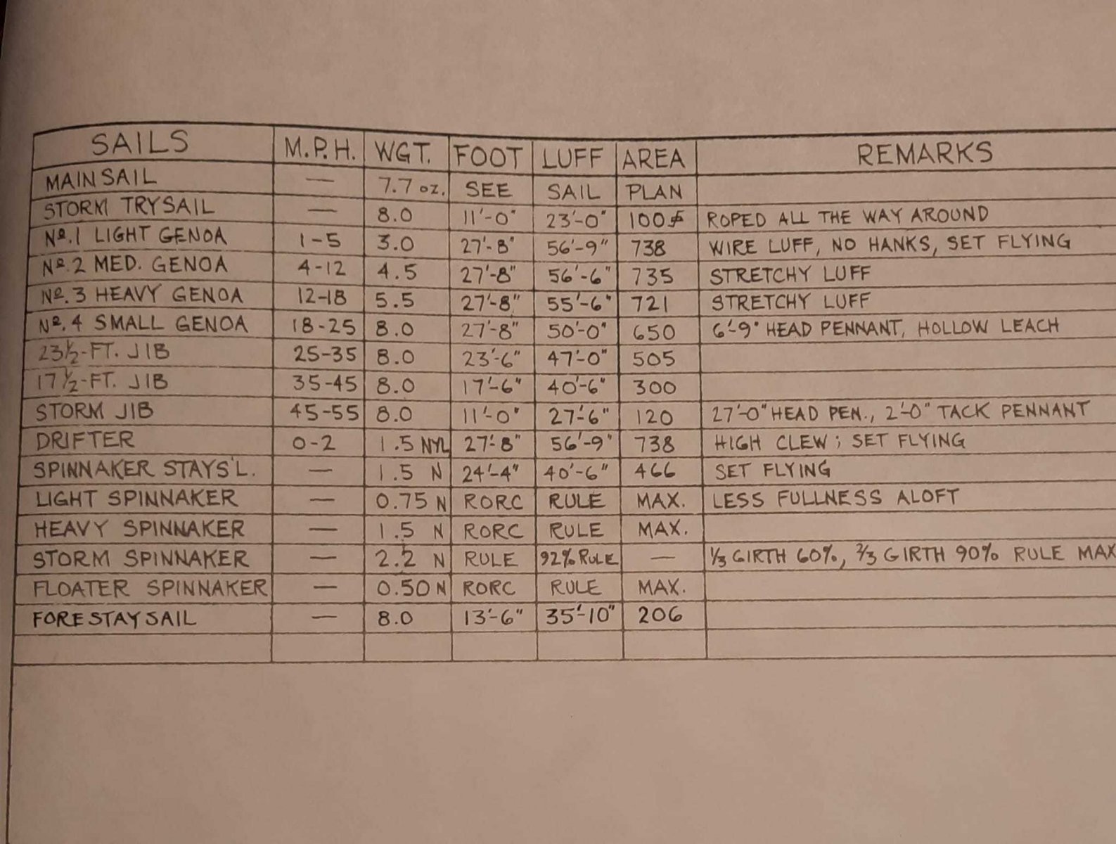 7 knots at 2000 rpm