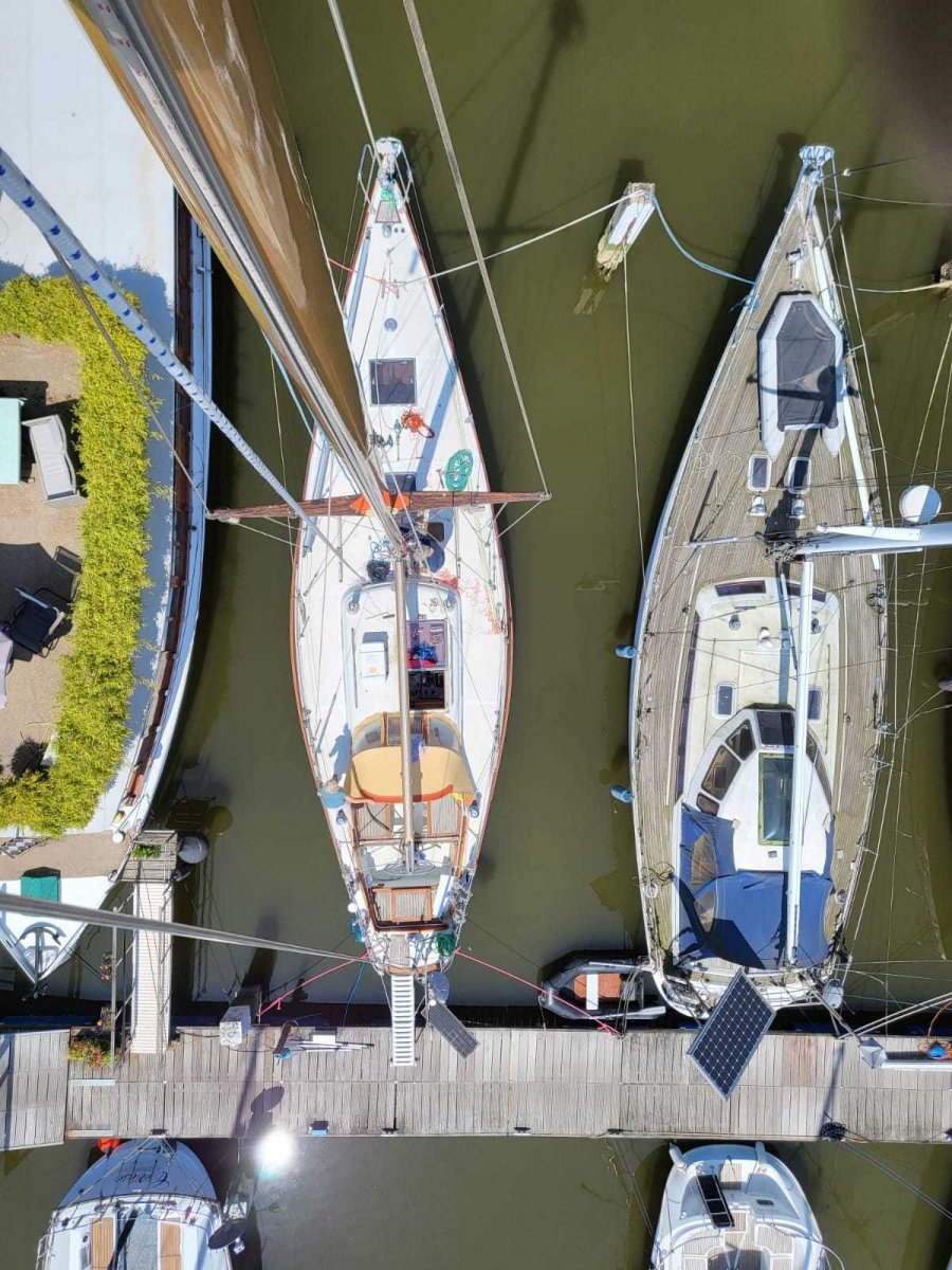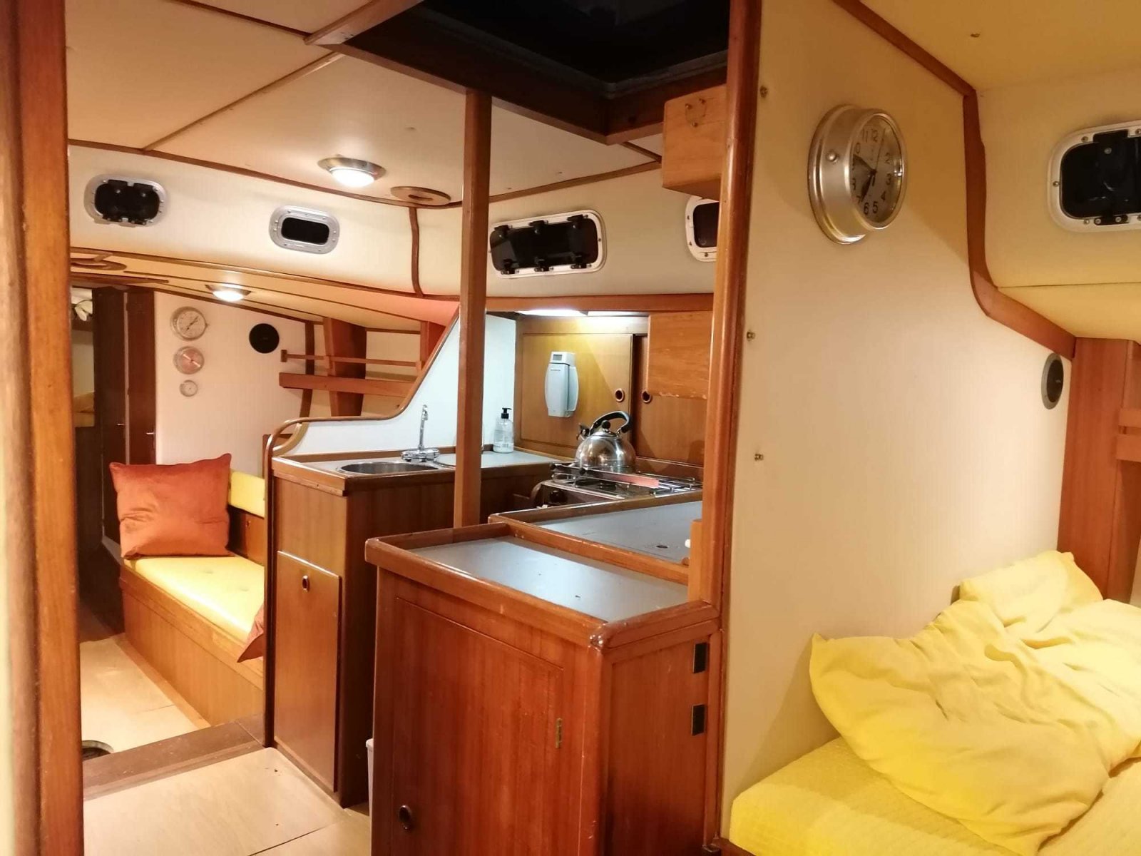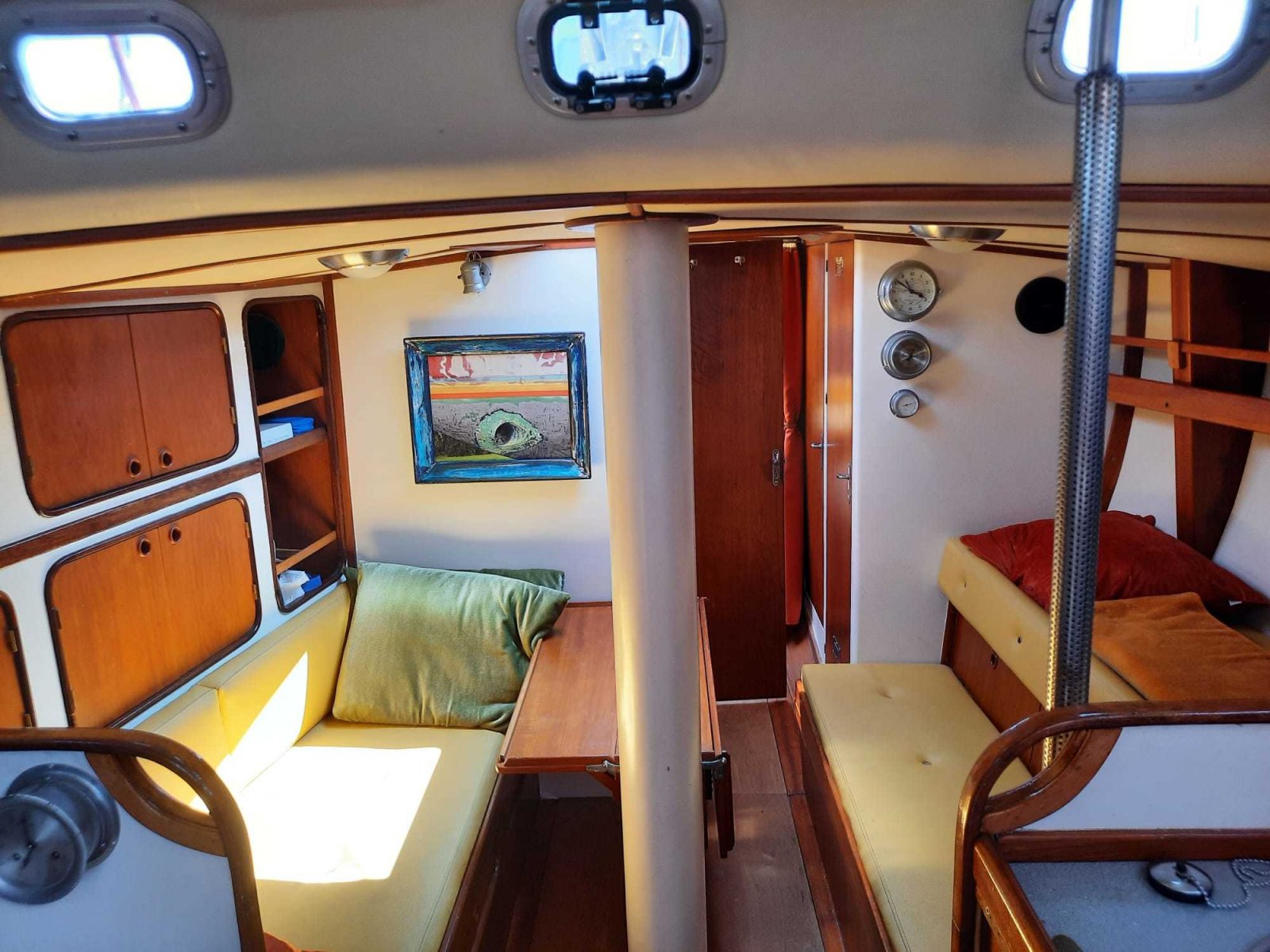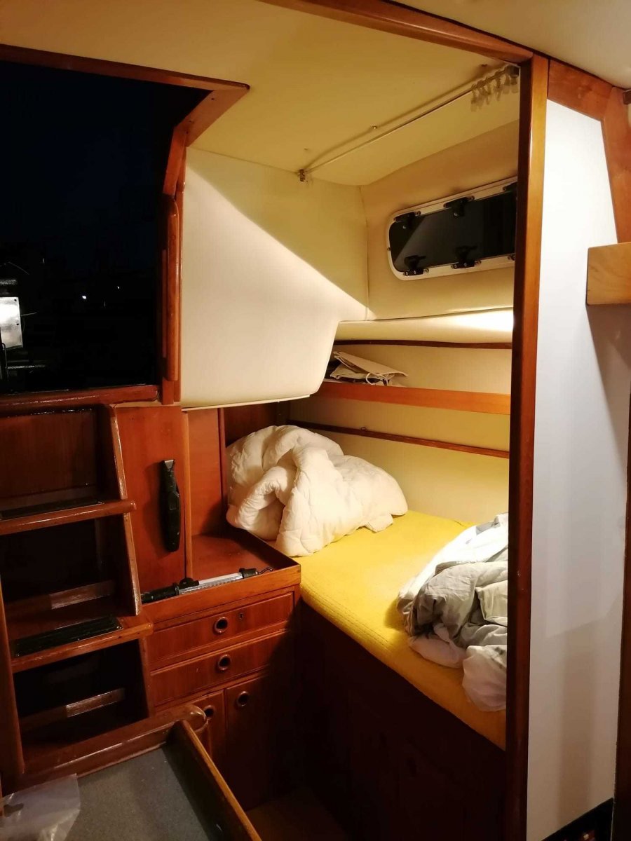 The design of 'Levante' captures the imagination both on the outside and inside. In the early 1970s this ship raced under the name 'GEM' skippered by owner William Ziegler III. Because only five sister ships were built, we can safely speak of a ship that is unique in its kind. Levante can be sailed perfectly singlehanded because all lines run into the cockpit.