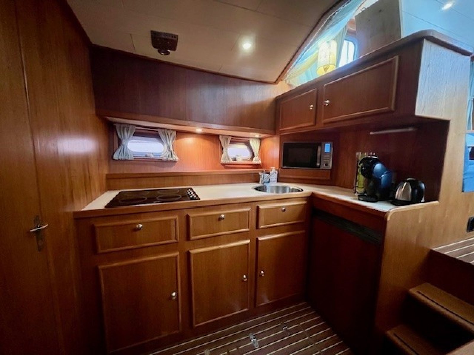Mooi gebouwde, stijlvolle kruiser met zeer comfortabele uitrusting. voor een langer verblijf aan boord. Het jacht is technisch onder andere uitgerust met Mastervolt 8kW generator, boeg- en hekschroef en mooie soepele 5 cilinder Volvo Penta-motor, met 110 pk. Het interieur biedt een comfortabel verblijf, met riante eigenaarshut in het achterschip, een grote separate toilet- en doucheruimte, salon, keuken/dinette en gastenhut in het voorschip. Voorzien van luxe extra's als wasmachine, magnetron en meer! Bovendien is het onderwaterschip in 2021 gestraald en is het gehele jacht nieuw overgespoten.