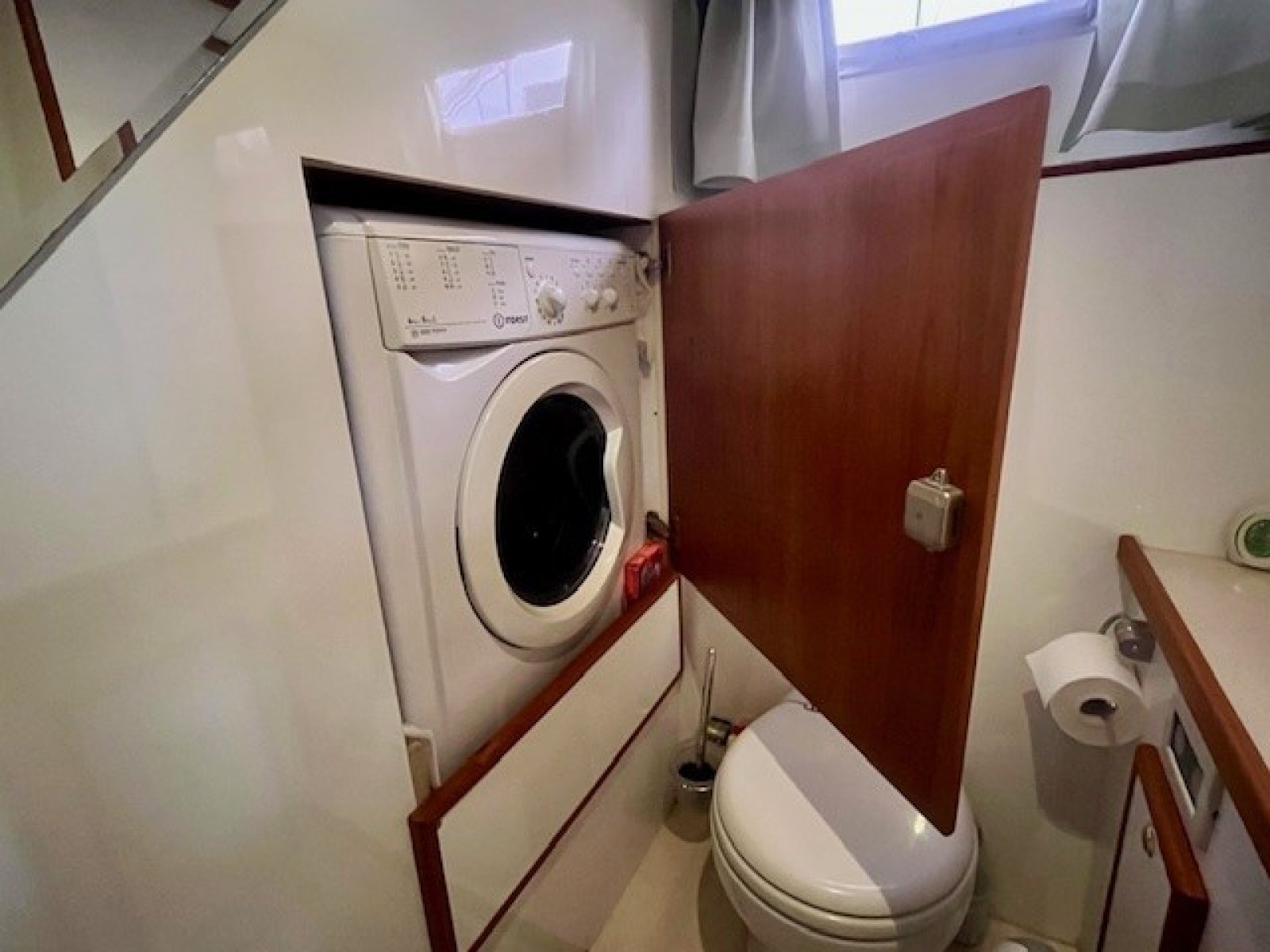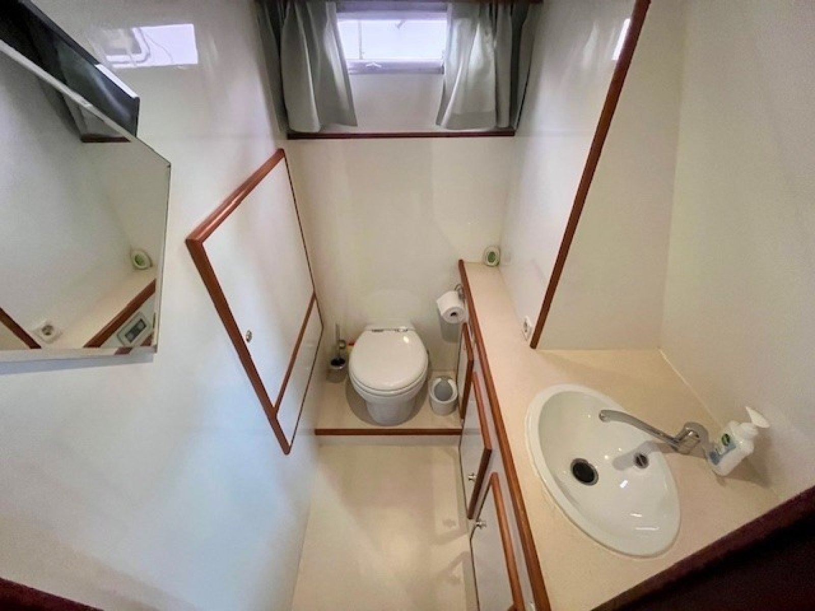 Elektrisch toilet in separate toiletruimte in stuurboord achterschip