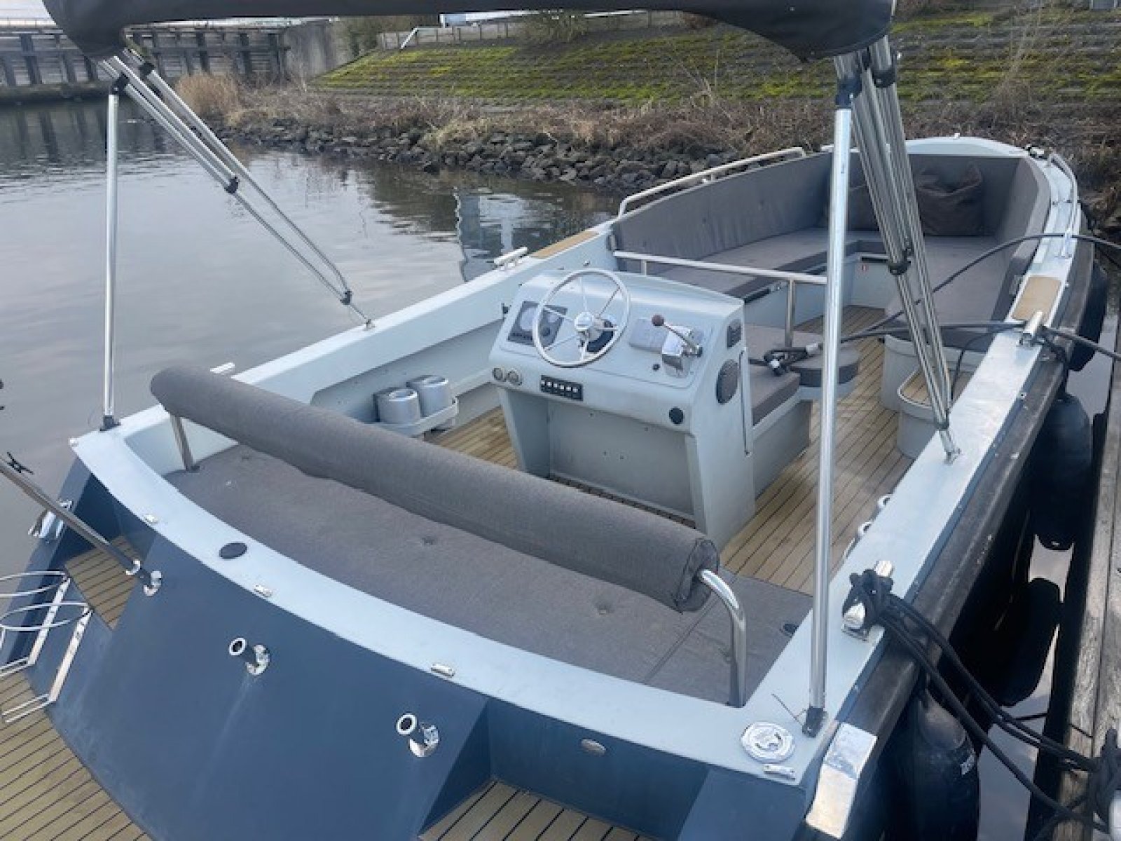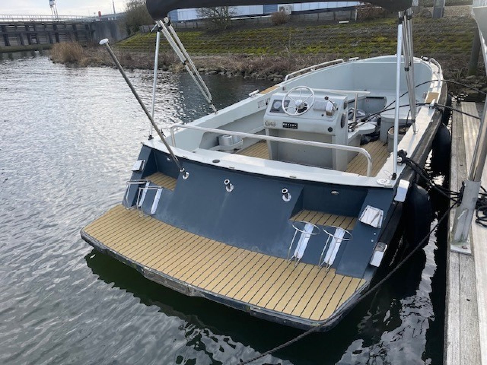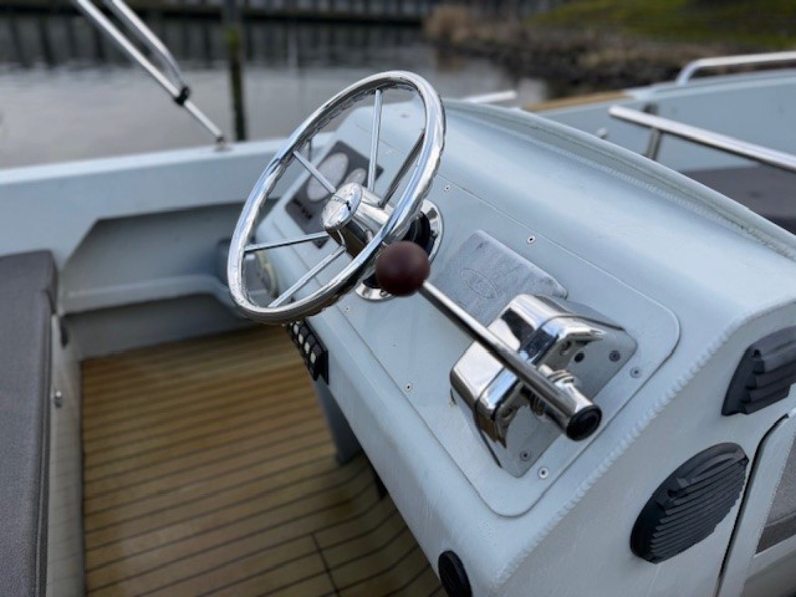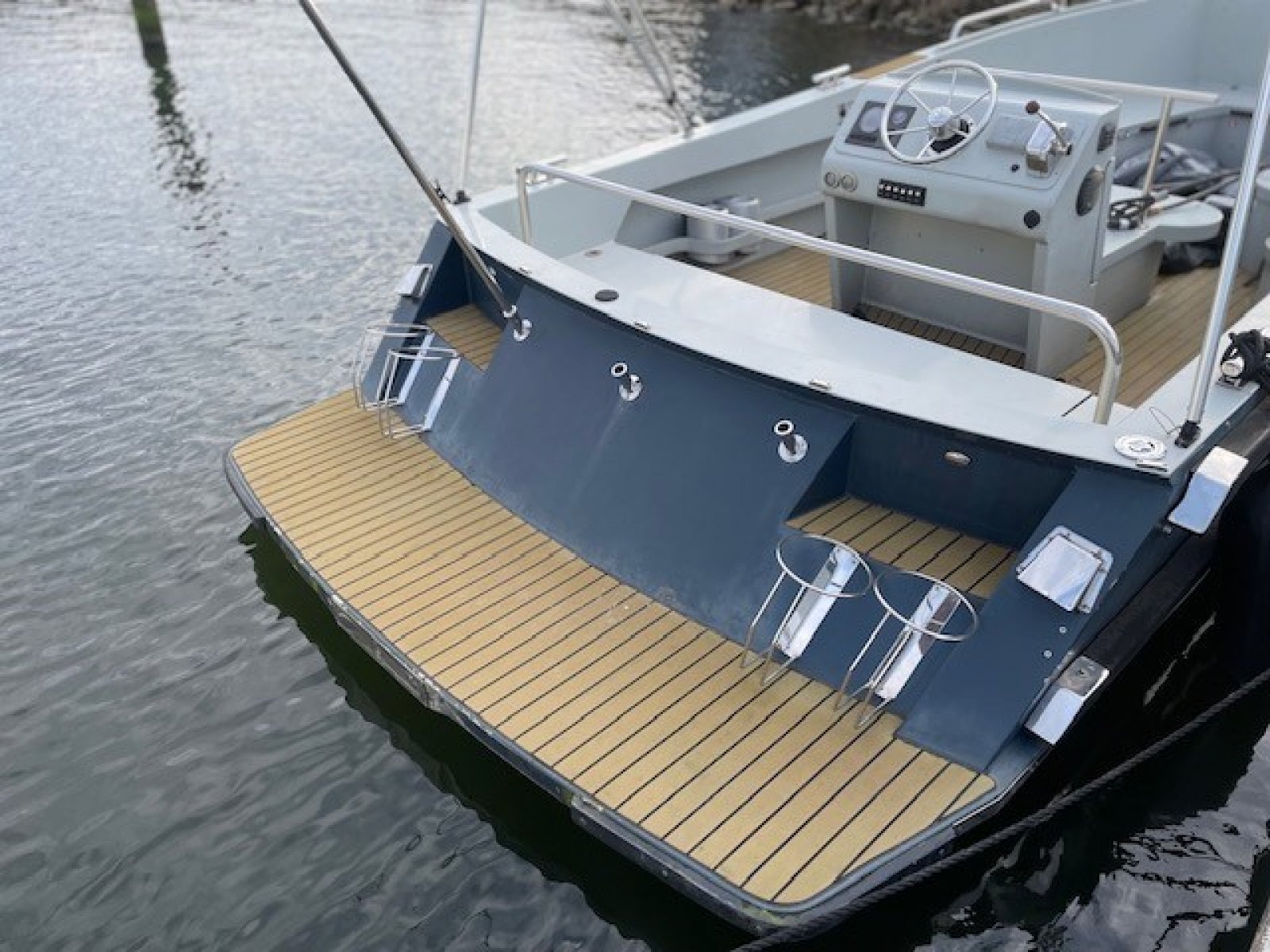 Extra luxe uitvoering - luxueuze flexteak vloeren, grote mooie bolders, een extra stootrand halverwege de romp, zwaardere Vetus motor en met kimkoeling
