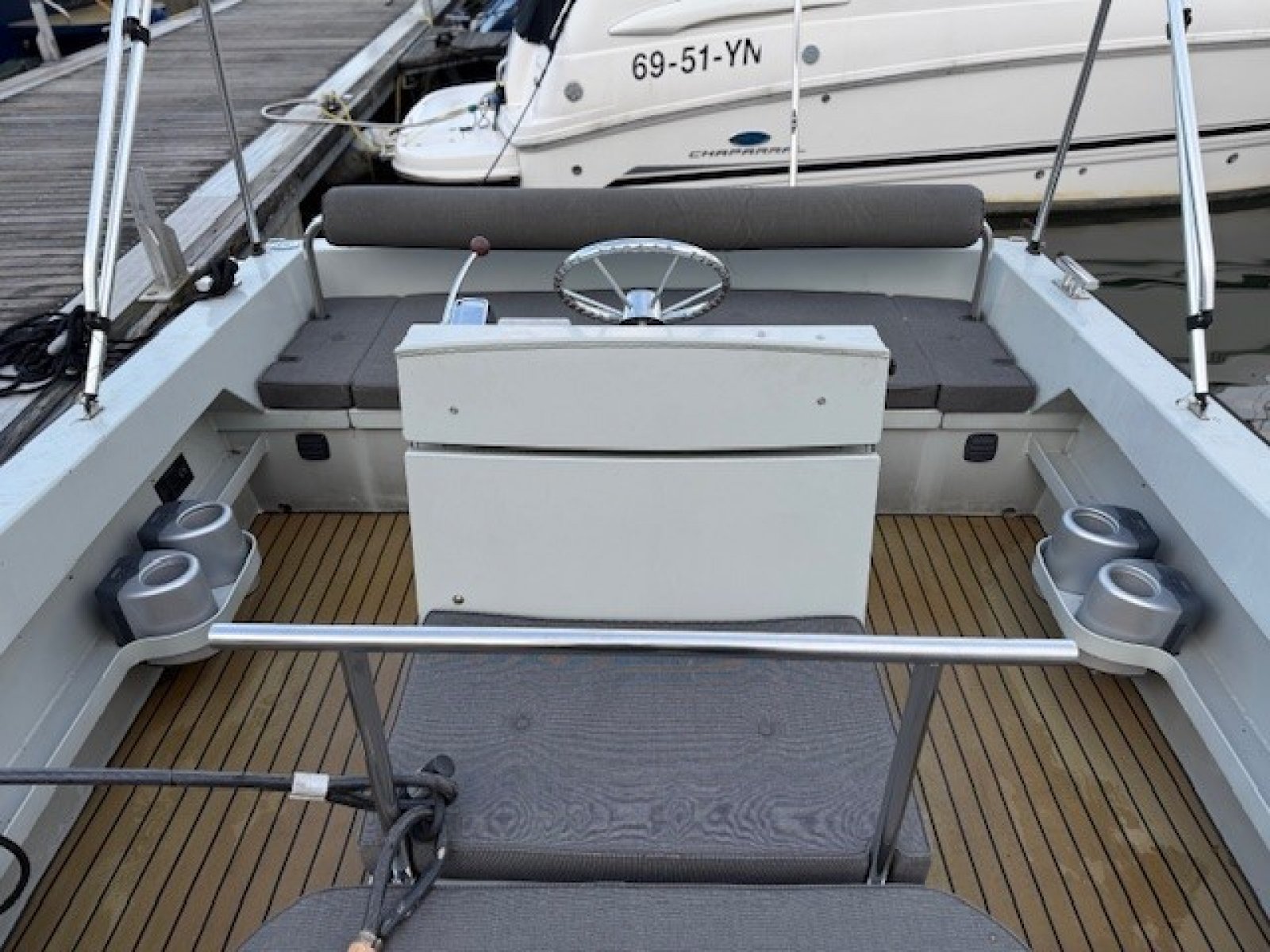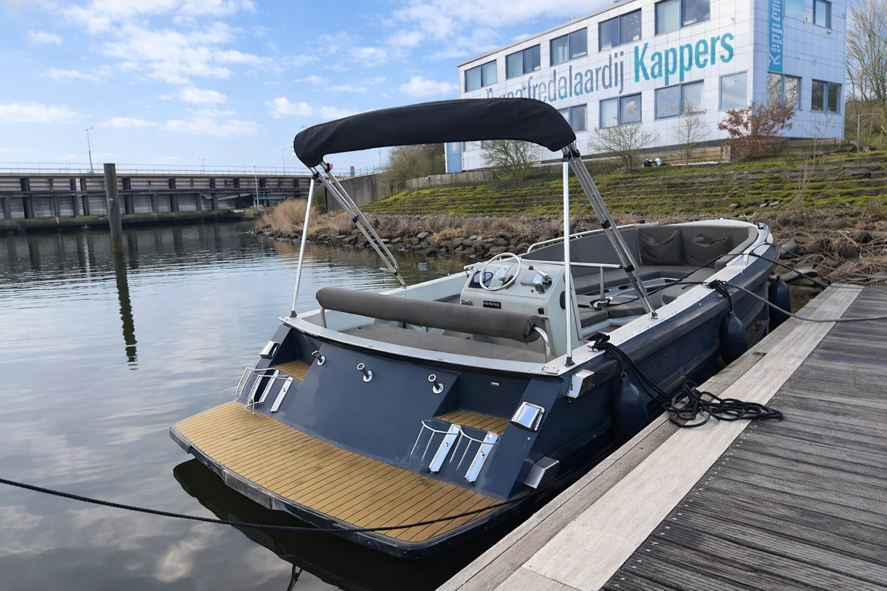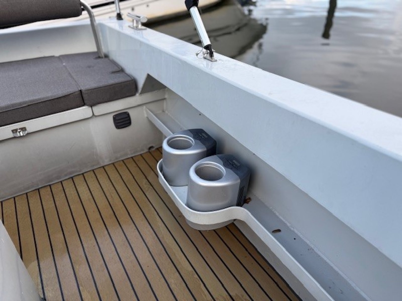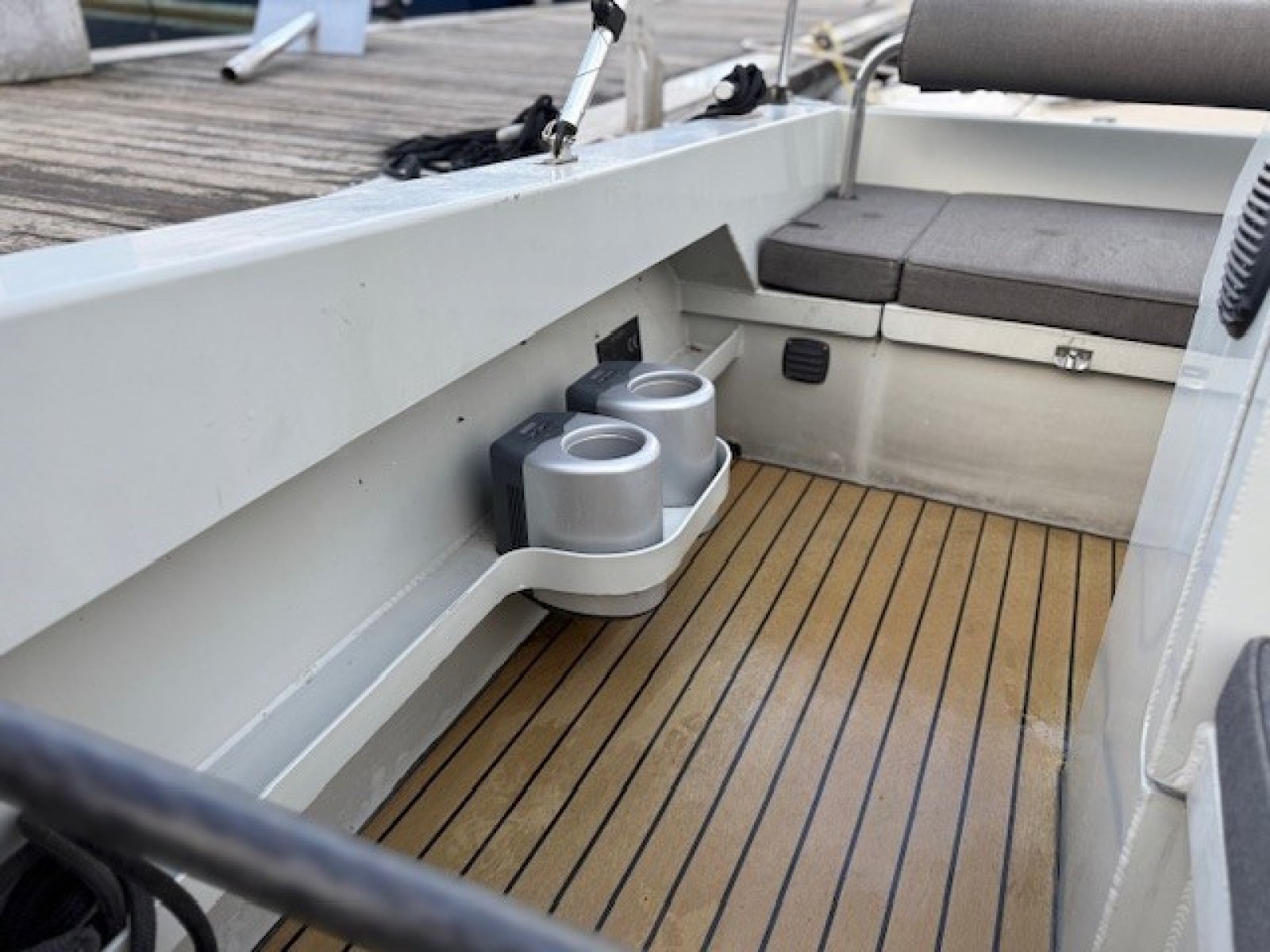Extra luxe uitvoering - luxueuze flexteak vloeren, grote mooie bolders, een extra stootrand halverwege de romp, zwaardere Vetus motor en met kimkoeling