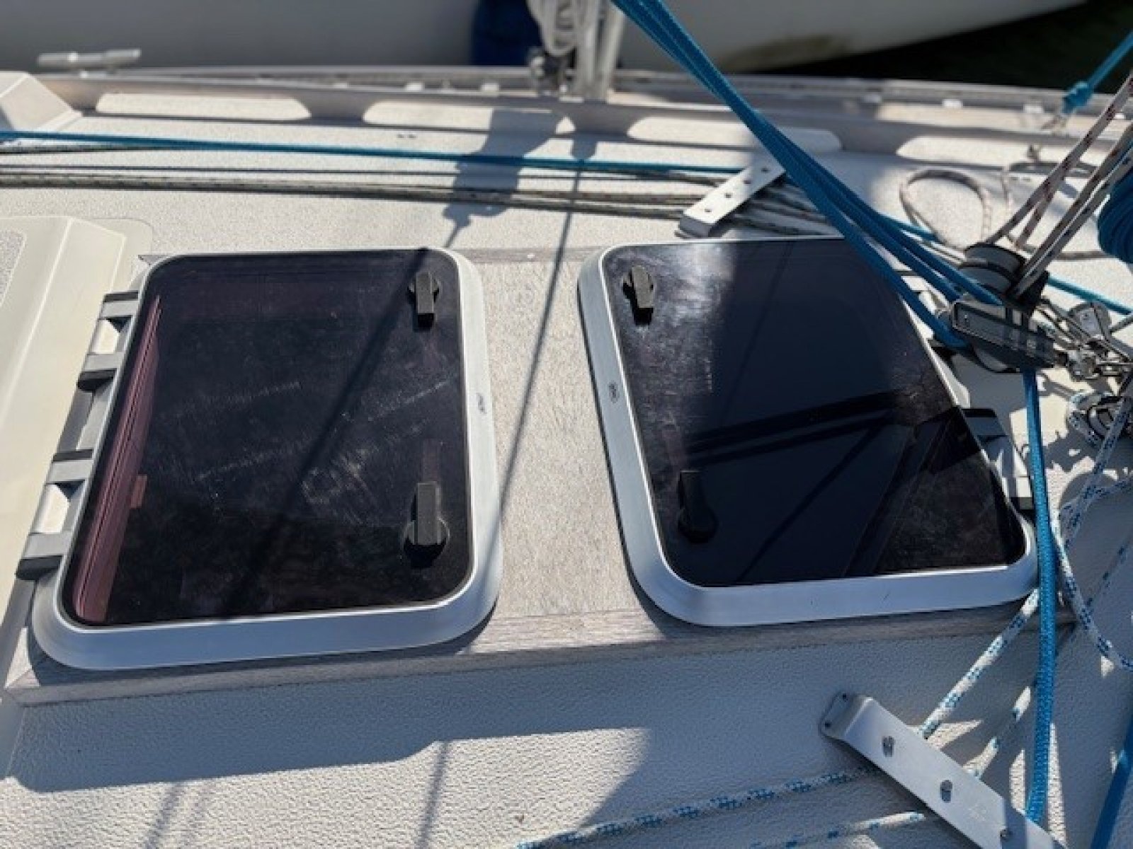 Lewmar valstoppers op kajuitdak (DC2), vernieuwd in 2021.