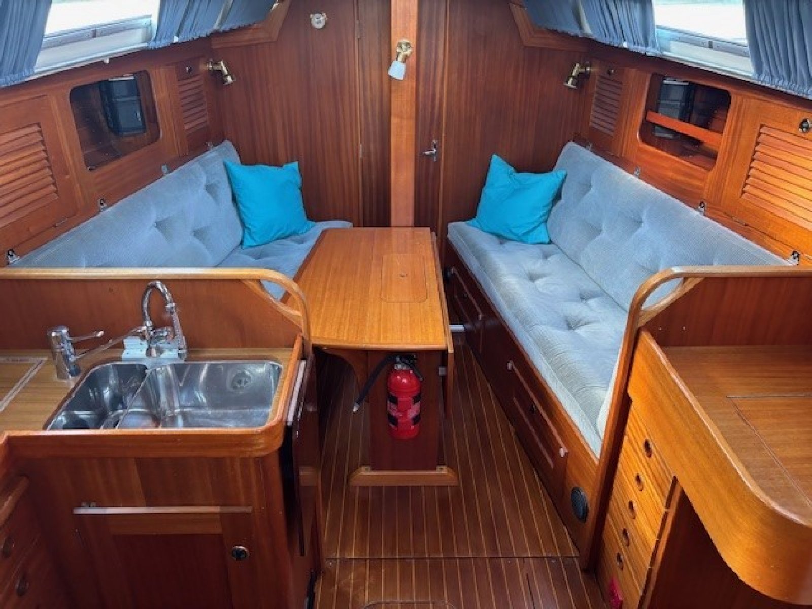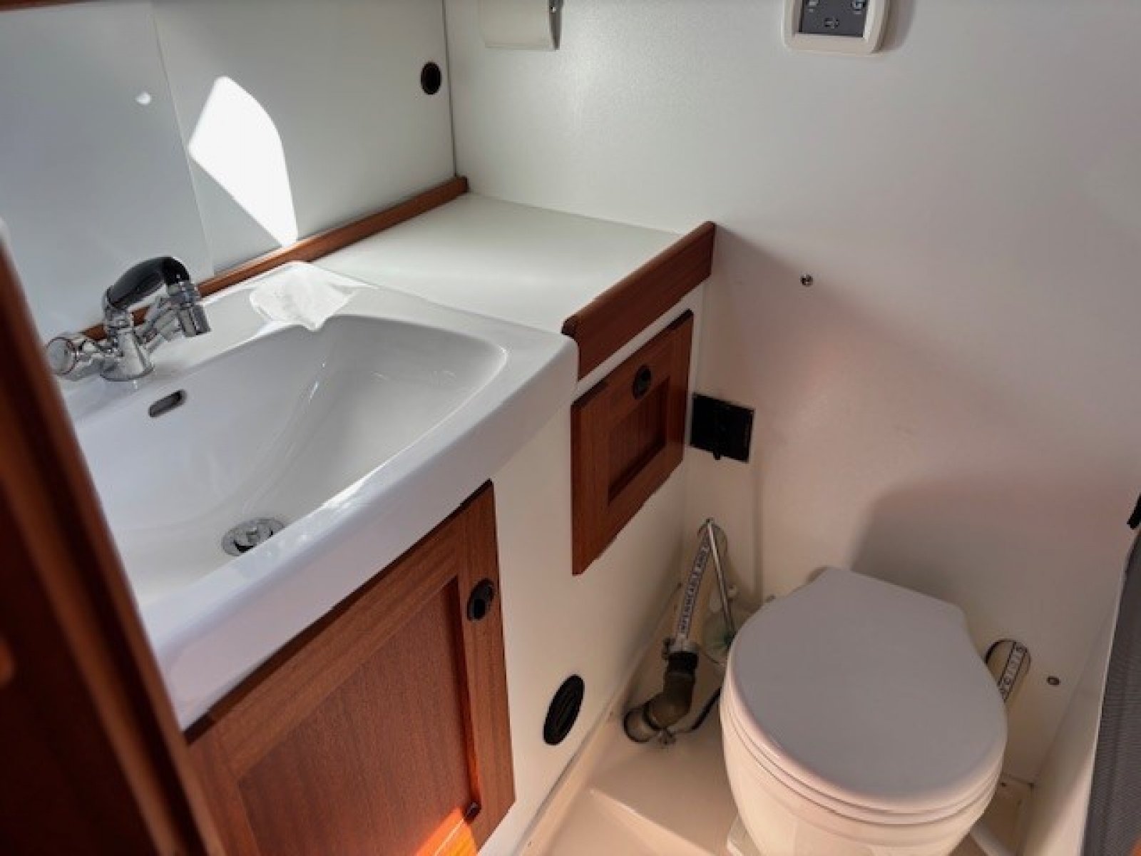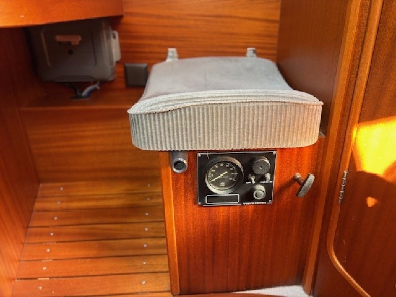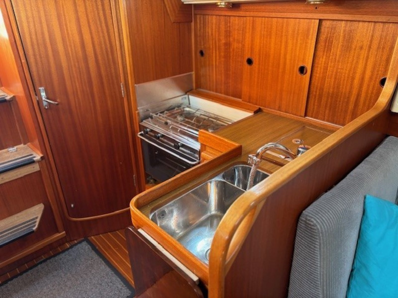 Met de luxe van een stuurstand en elektrische lieren op een 31 foot jacht voelt u direct hoe gemakkelijk en plezierig het zeilen kan zijn. De nieuwe dakluiken zorgen voor een zee van licht en frisse lucht in de kajuit, waar een vernieuwd toilet en sfeervolle LED-verlichting zorgen voor een eigentijdse en comfortabele sfeer. Alles ademt zorg en aandacht, waardoor deze boot méér is dan zomaar een Hallberg-Rassy – het is een juweel dat klaarstaat om nieuwe avonturen te beleven.