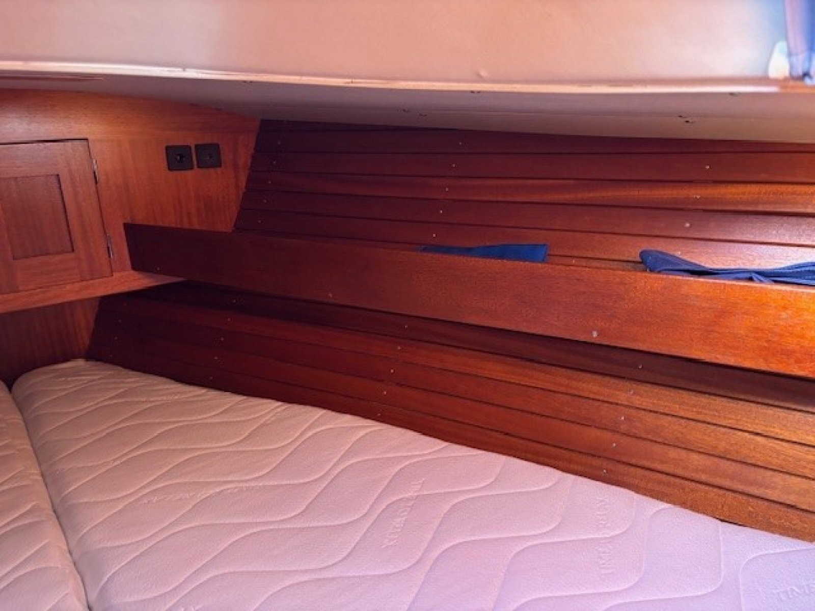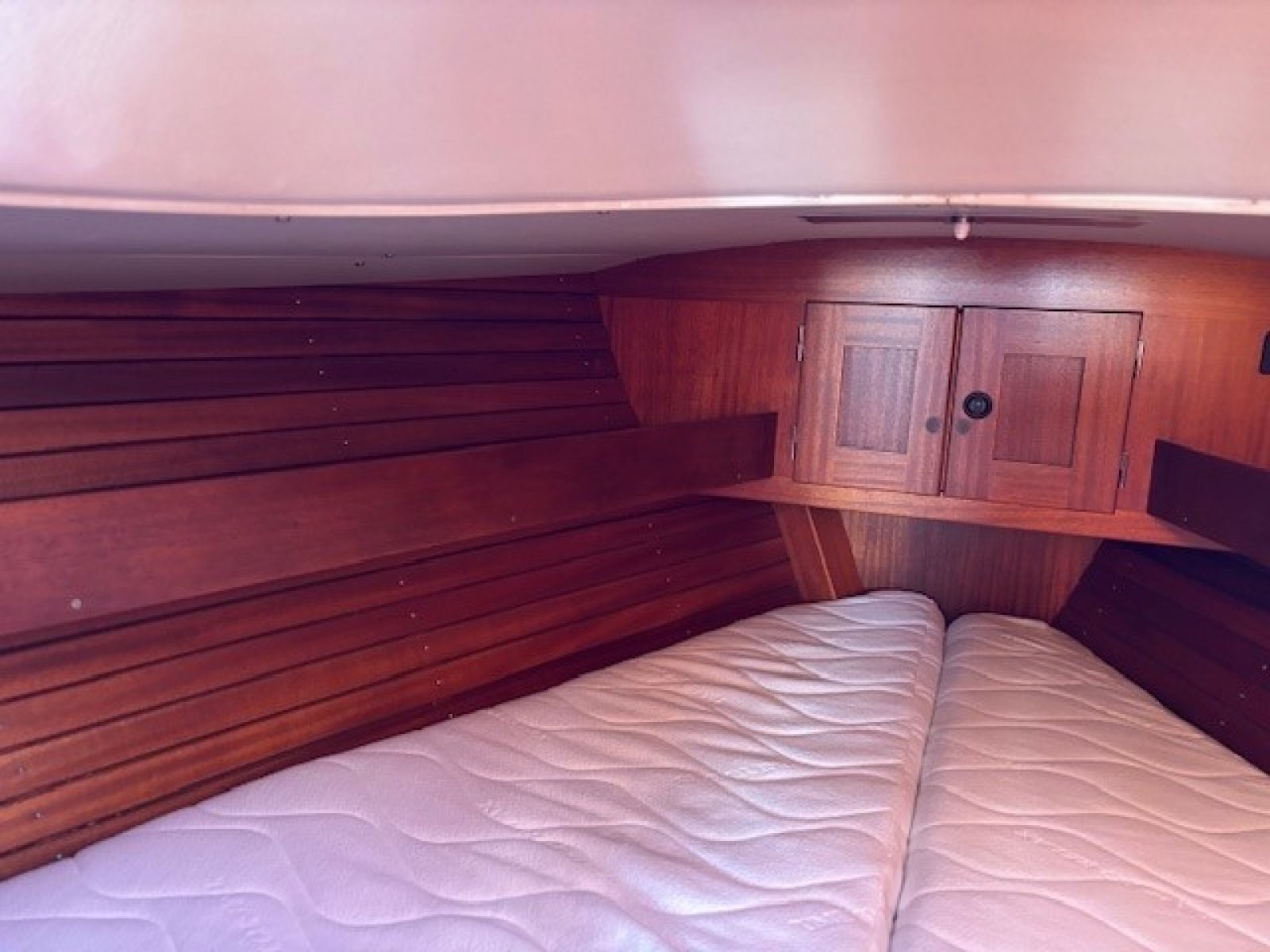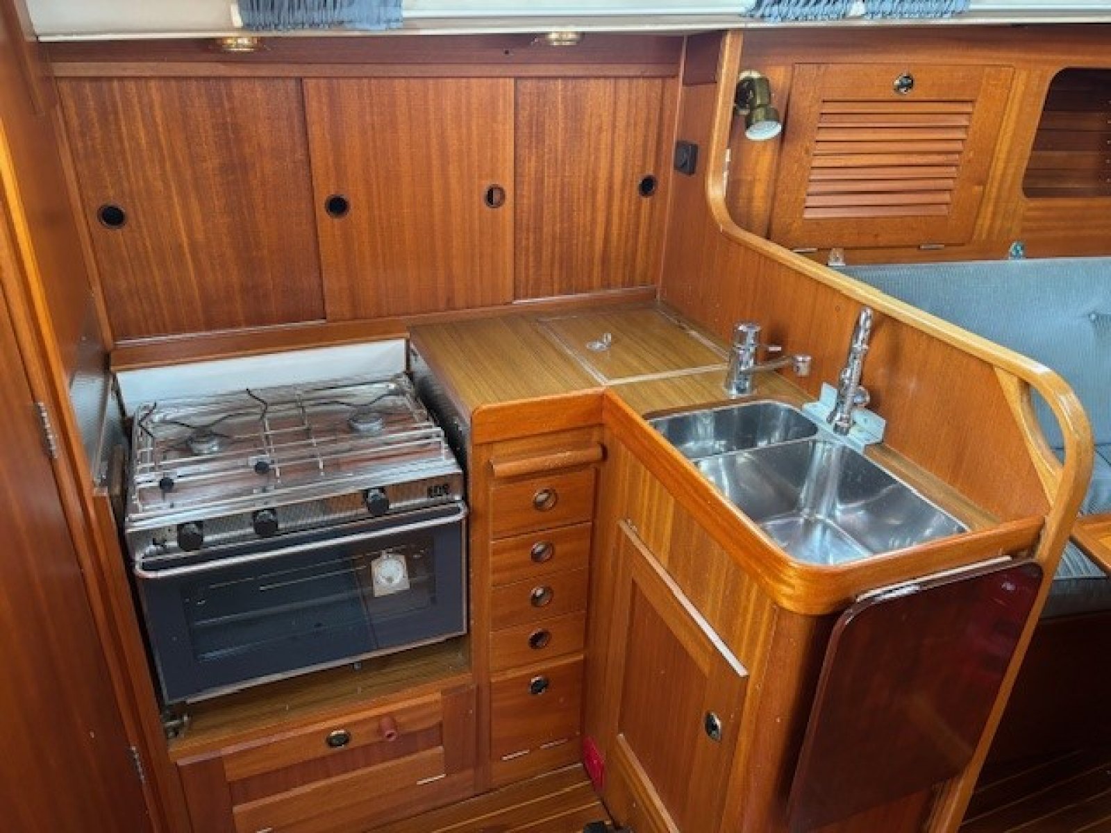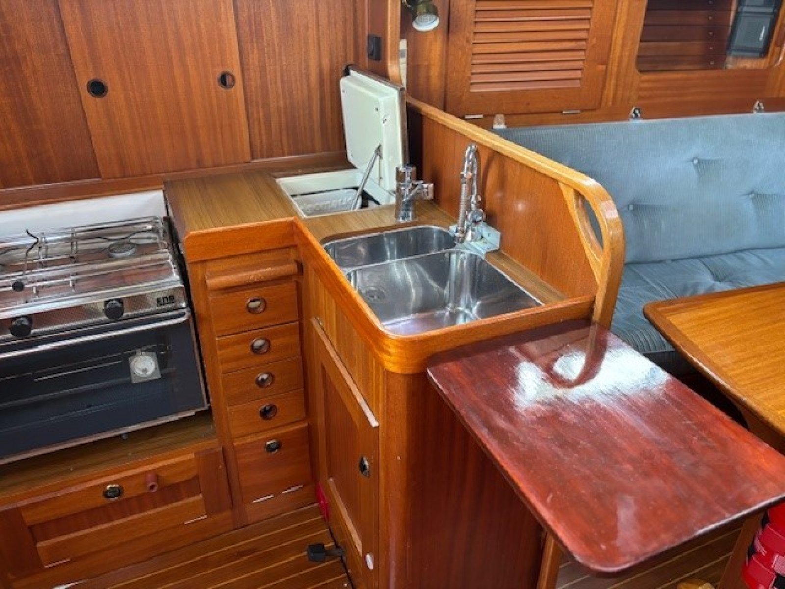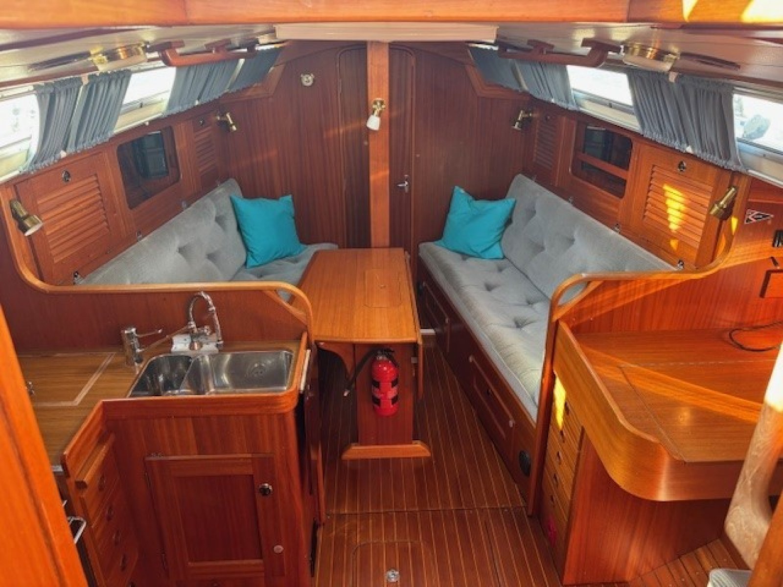 Met de luxe van een stuurstand en elektrische lieren op een 31 foot jacht voelt u direct hoe gemakkelijk en plezierig het zeilen kan zijn. De nieuwe dakluiken zorgen voor een zee van licht en frisse lucht in de kajuit, waar een vernieuwd toilet en sfeervolle LED-verlichting zorgen voor een eigentijdse en comfortabele sfeer. Alles ademt zorg en aandacht, waardoor deze boot méér is dan zomaar een Hallberg-Rassy – het is een juweel dat klaarstaat om nieuwe avonturen te beleven.