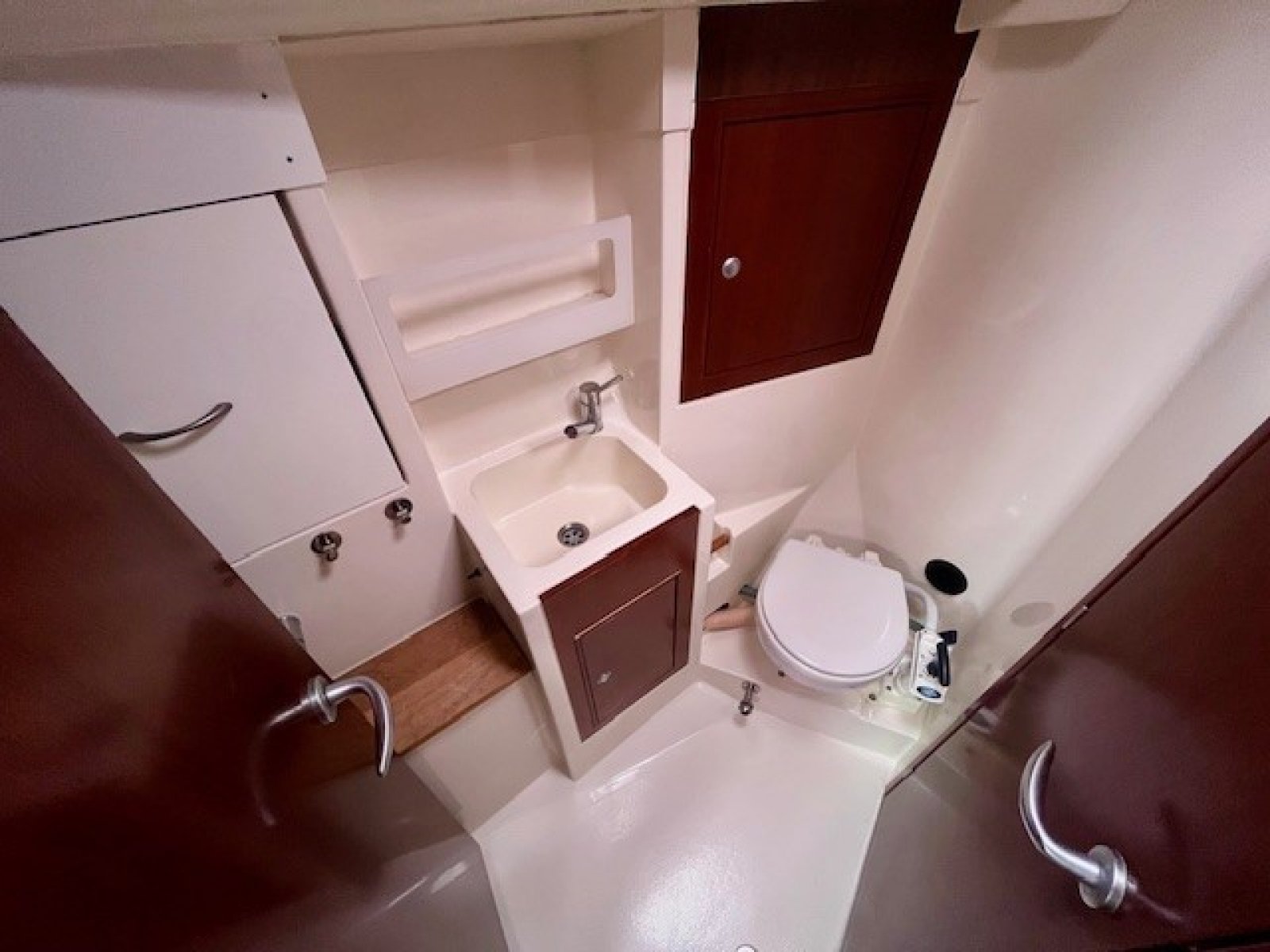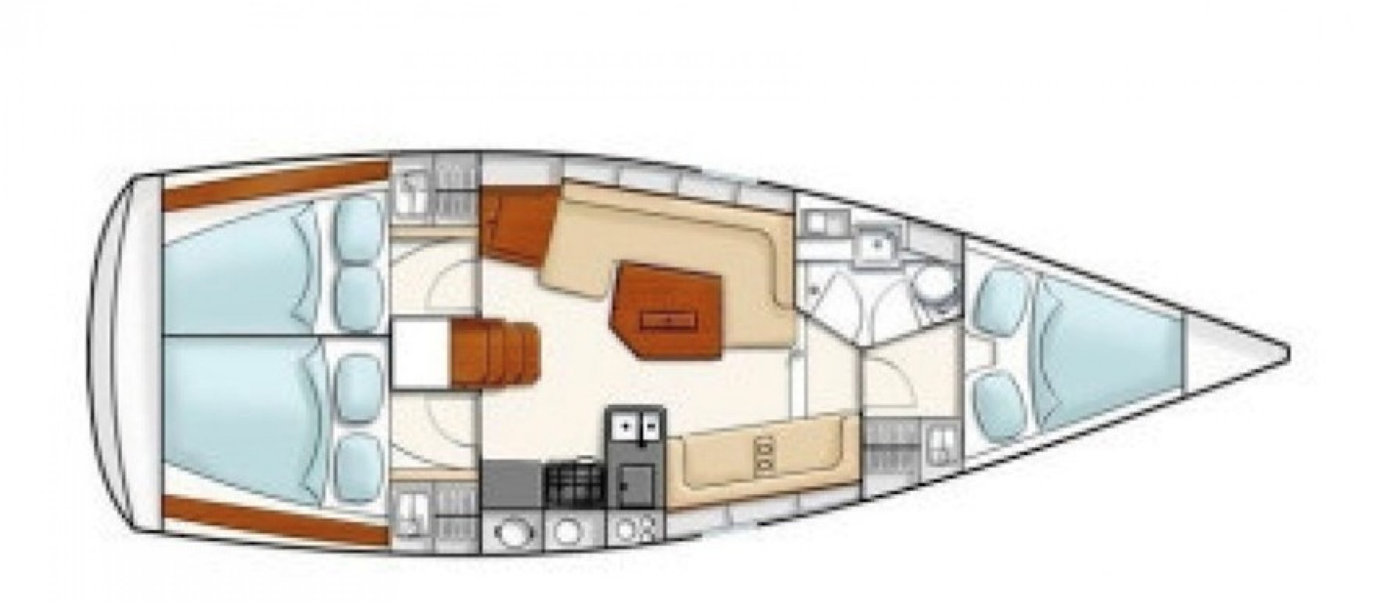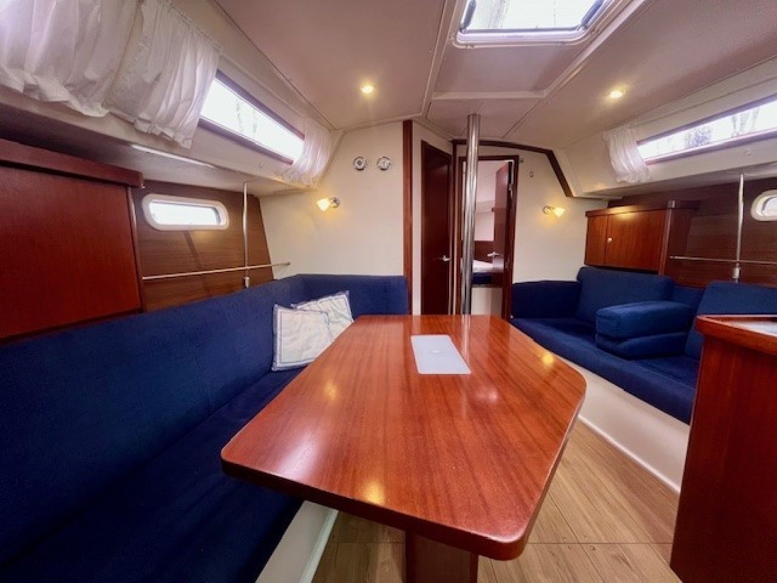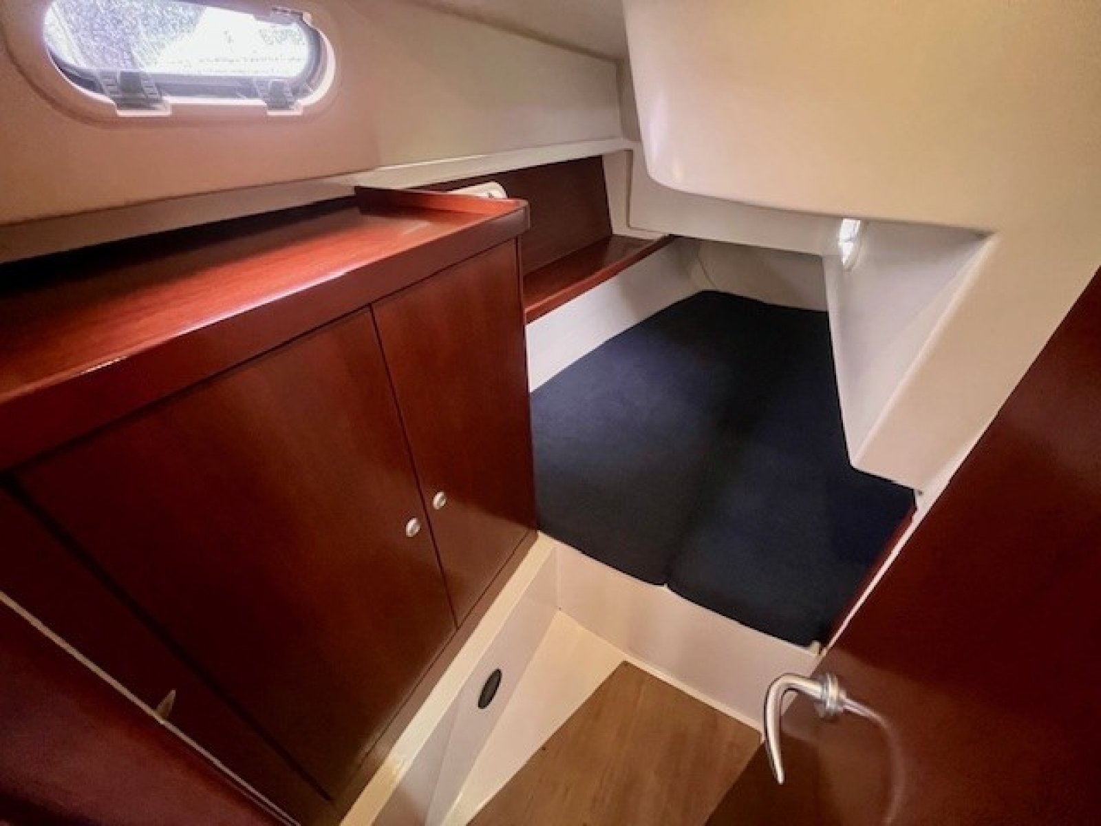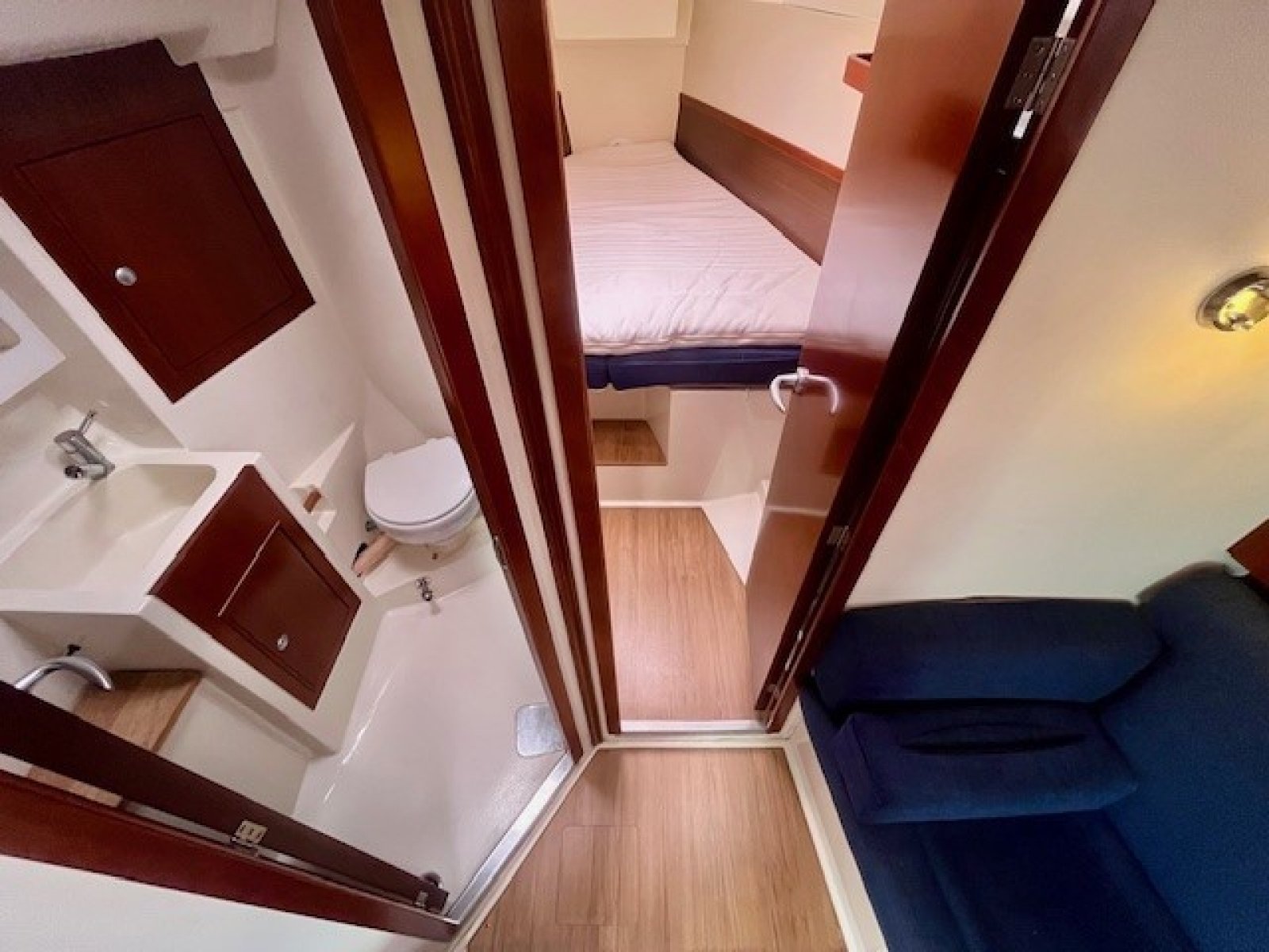 Deze Hanse 350 biedt en voorkajuit en achterkajuit, waarbij er een extra achterkajuit gecreeerd is aan bakboord zijde. Door het wegnemen van het matras is deze ruimte natuurlijk ook functioneel als bergruimte te gebruiken.