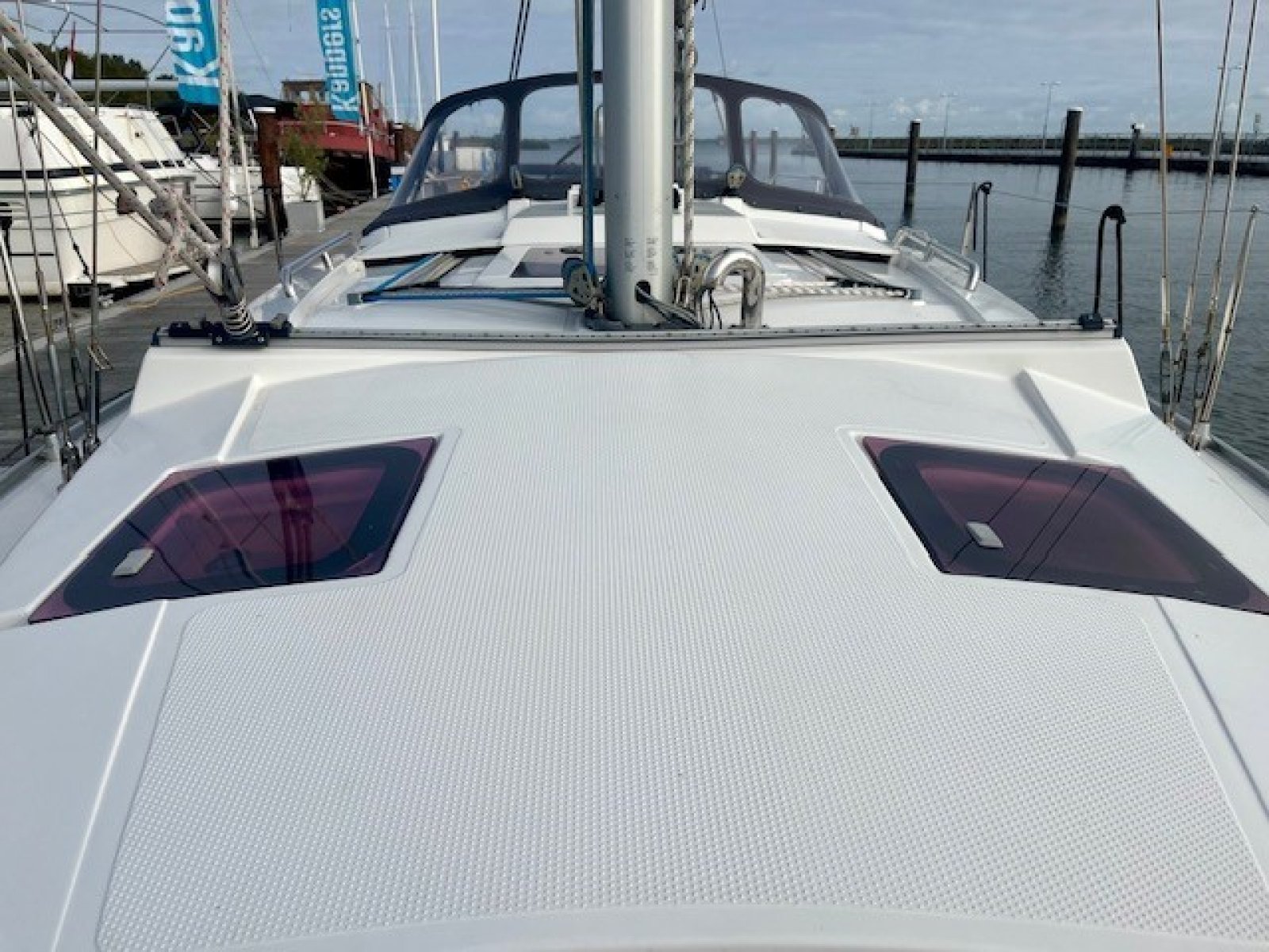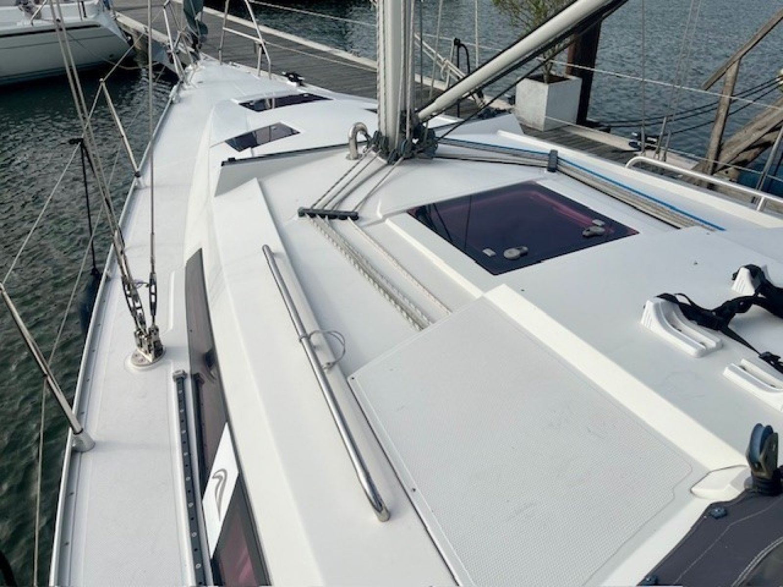 Deze Hanse is uitgerust met een zelfkerende fok alls voorzeil. In een handomdraai gaat u daarmee door de wind, waarbij het voorzeil zelf zijn werk doet, zonder schoten te moeten lossen en/of aan te trekken. Het relatief grote grootzeil geeft vollop power om vlot te kunen zeilen. Als extra, voor de dagen dat er echt minder wind is, is deze Hanse tevens uitgerust met een Gennaker. Met deze uitgekiende tuigage is deze Hanse een ideaal jacht voor zowel de sportieve zeiler, alsmede de tourzeiler. Voor familievakanties, of een echtpaar met twee. Deze Hanse biedt vollop plezier!